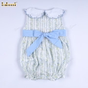 Plain light blue jumpsuit with floral pattern, for girls. - BB3557