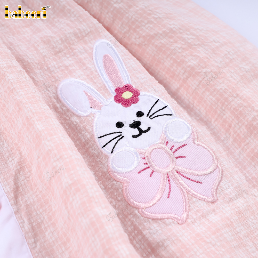 Applique Dress With Bunny And Flower Button For Girl - BB3253A