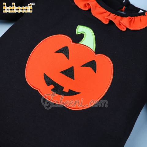 Appliqued pumpkin Halloween and pumkin printed girl set - BB812A