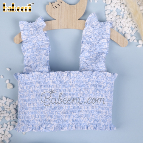 Features: Lovely two piece swimming for little girls with floral printed on fabric, smocking on the top, ruffle around straps & top. Perfect for swimming. Best gifts for birthday or special days.