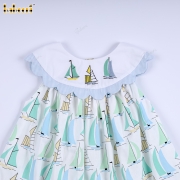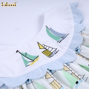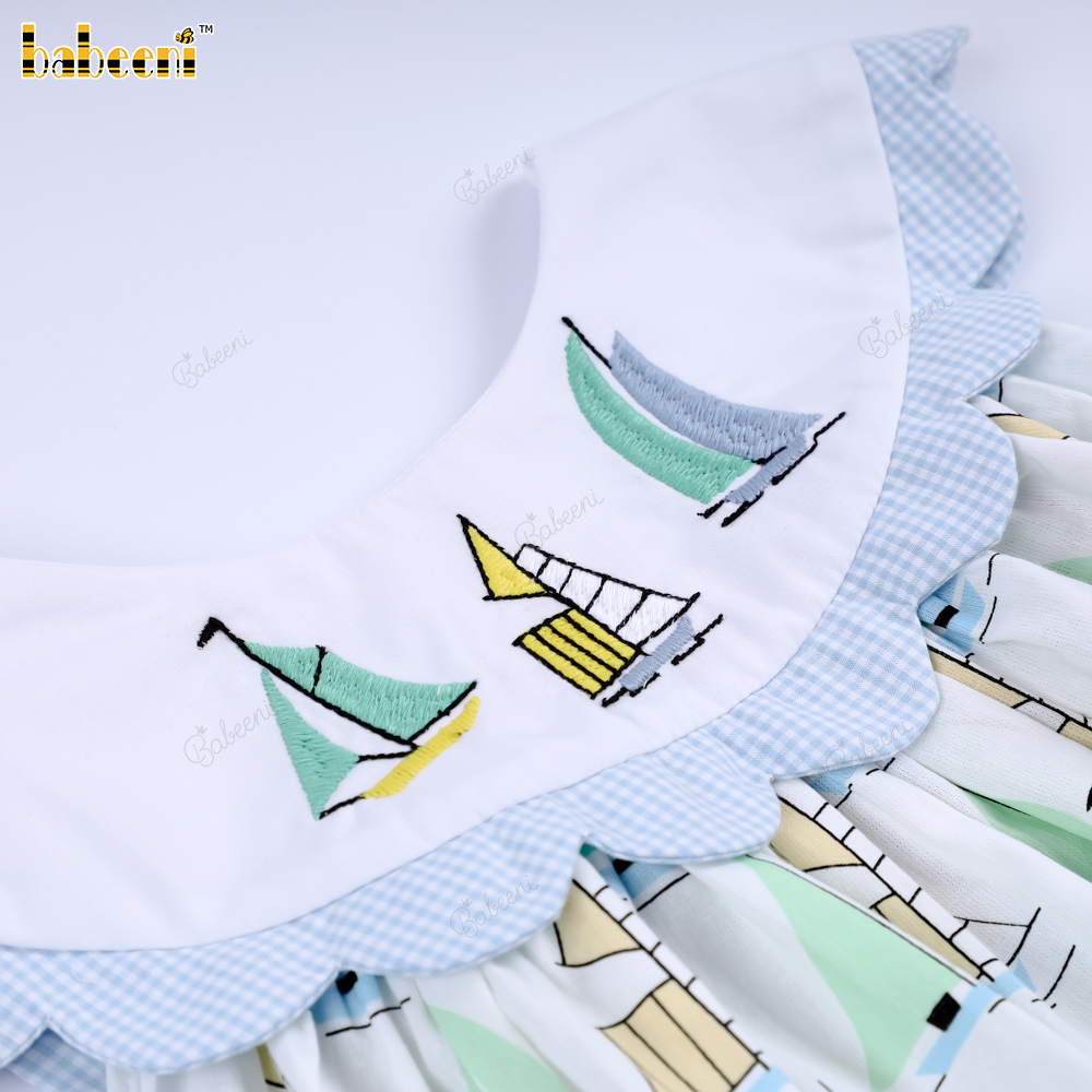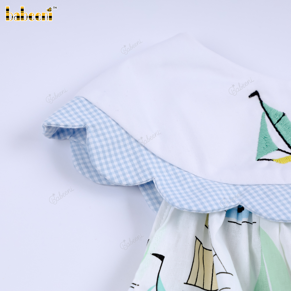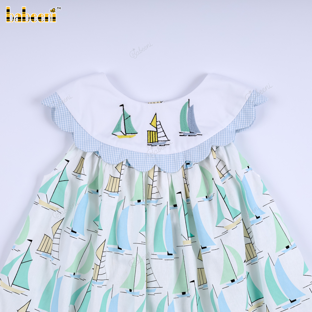Baby Dress with Embroidered Sailboat Pattern- BB3569