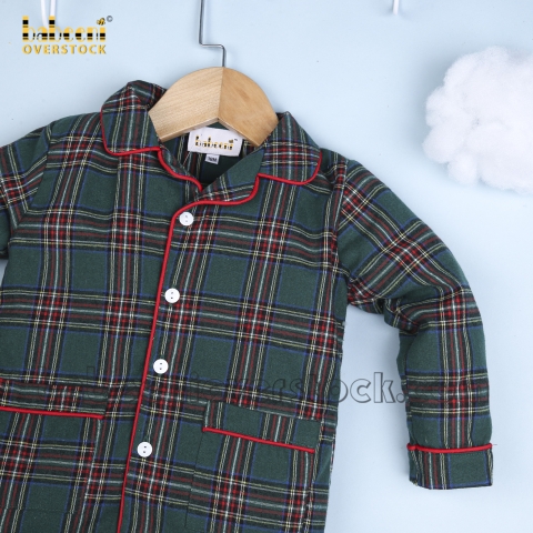 Feature: Little boy sleepwear with classic collar, two functional pockets, mother pearl buttons for easy wearing