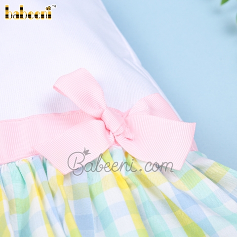 Fabric: White pique plain + Mint, blue & yellow plaid fabric