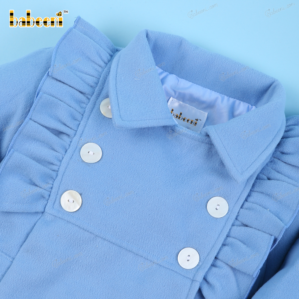 Features: Blue overcoat for girl, brings warmness in cold winter, ruffles in both sides, matching layer inside. Perfect for Winter. Best gifts for birthday or special days.