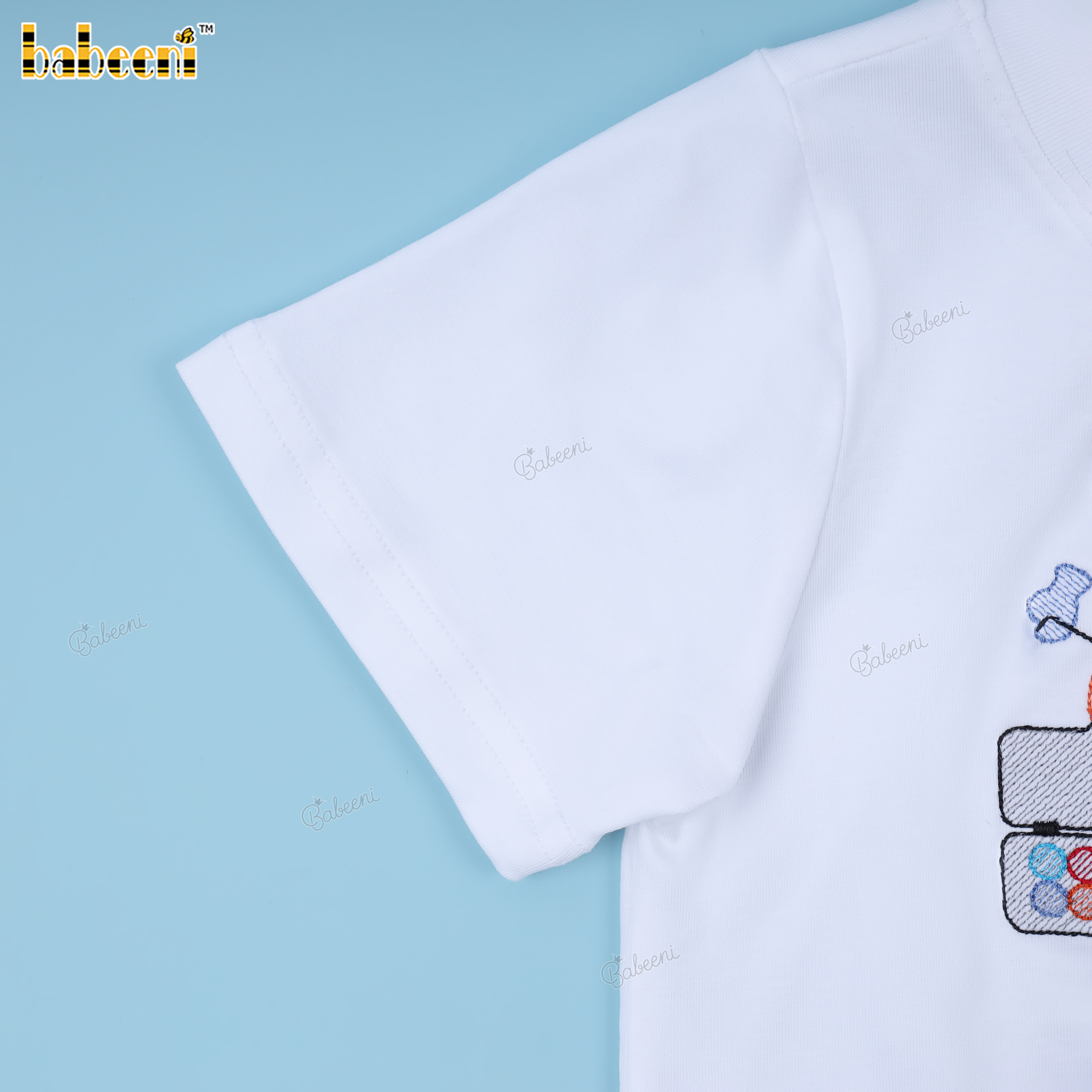Boy Outfit White And Blue With Embroidered Details - BB3405A