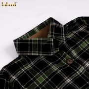 Boys' checkered flannel shirt in blue and black, and brown khaki shorts set.- BB3561