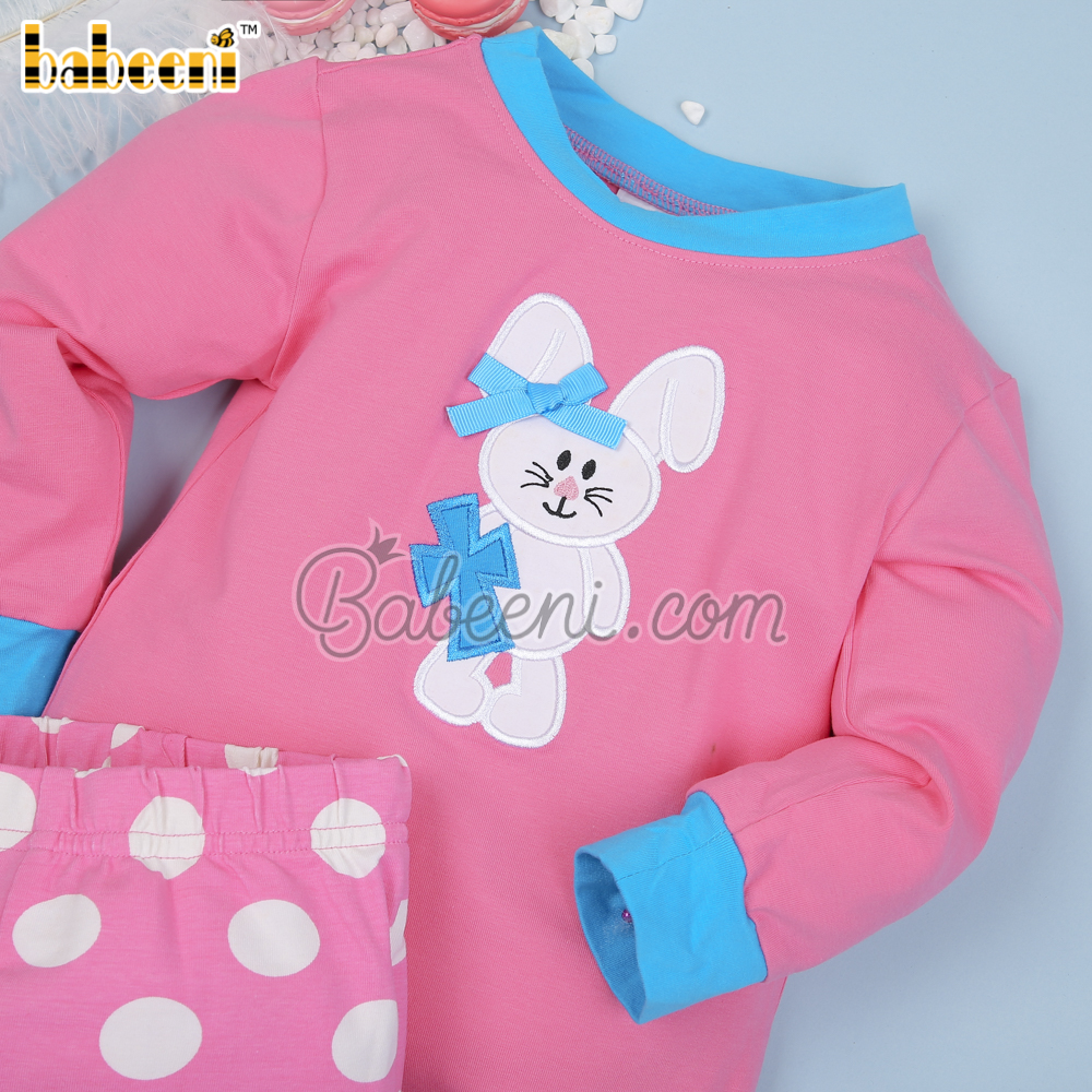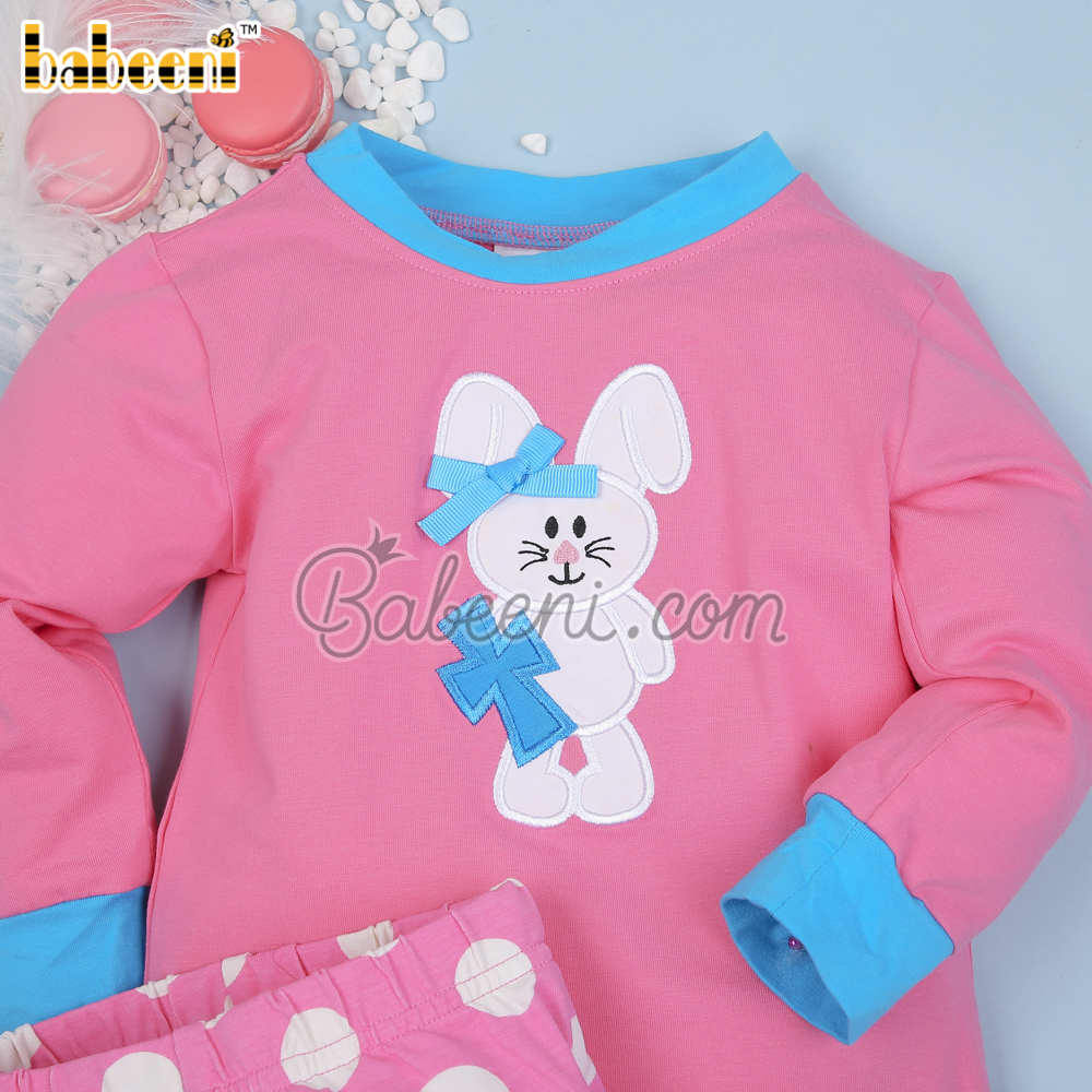 Bunny with cross appliqued kid set for Easter - BB1035B