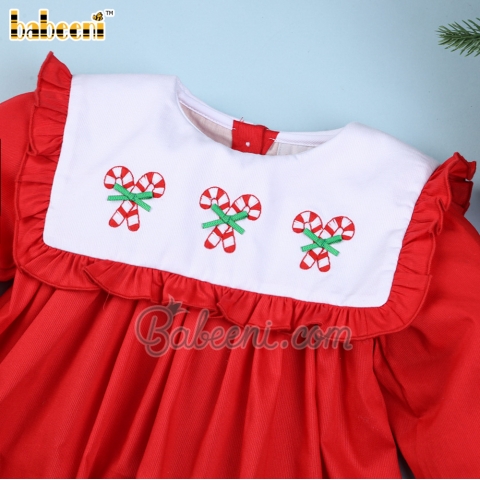 Candy cane hand embroidery baby dress - BB3391A