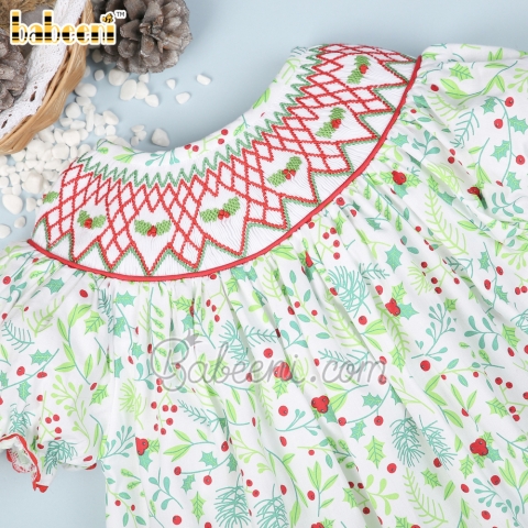 Christmas floral printed smocked dress – BB2789A