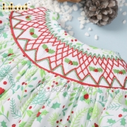 Features: Beautiful smocked dress for little girls with hand smocked Christmas floral on the chest, Christmas floral printed on fabric, red zigzag on sleeves & bottom of dress. Perfect for Christmas. Best gifts for birthday or special days.