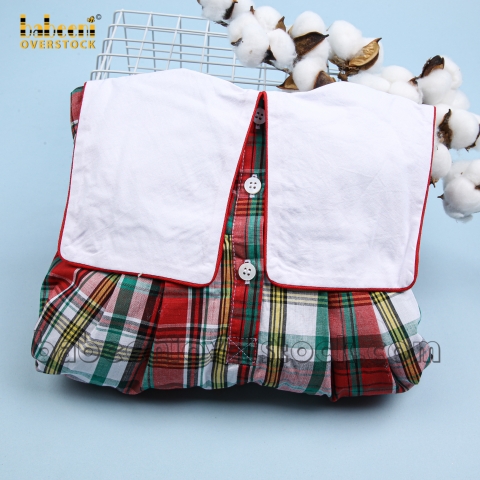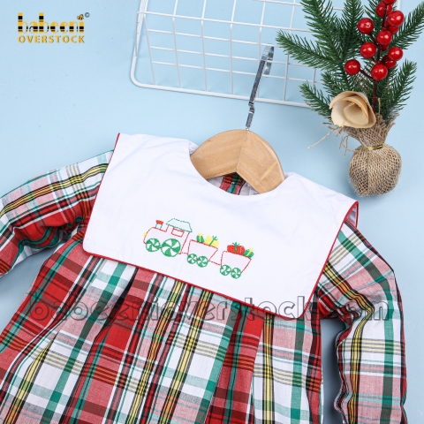 Feature: Nice long bubble for little boy on Christmas with gift train hand embroidery patterns on the large square collar, long sleeves.