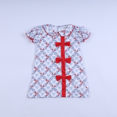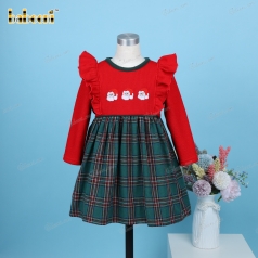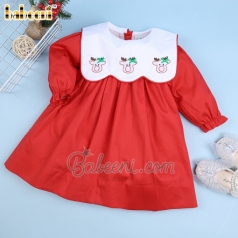 Hand Embroidery Dress Shirred In Red And Green For Girl - BB3228B
