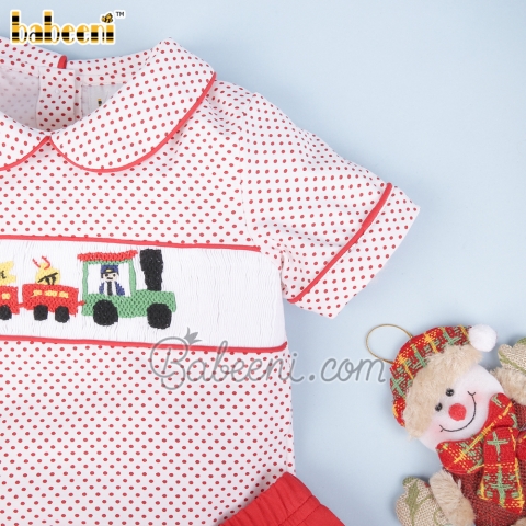 Christmas Train smocked boy set clothing – BB2852B