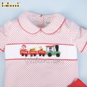 Features: Nice smocked set clothing for little boys with hand Christmas train on the chest, red piping on collar & sleeves. Perfect for Christmas. Best gifts for birthday or special days.