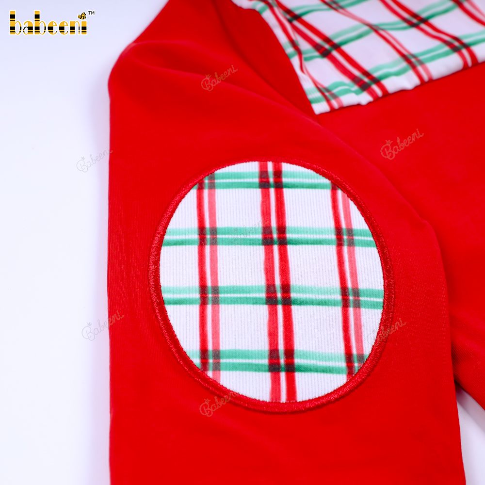 Fabric: Green, red plaid pique printing 4.0 fabric + red knit fabric + white plain fabric.
