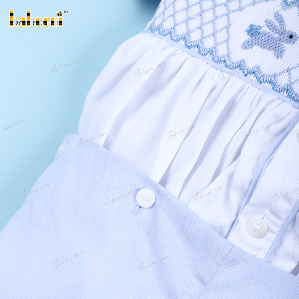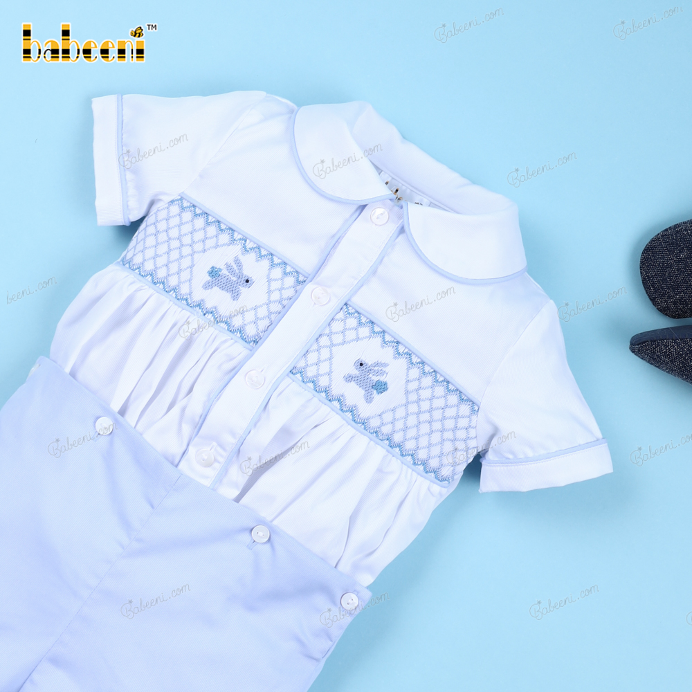 Classy geometric hand-smocked boy short set - BB3117A