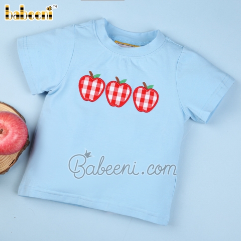 Feature:T-shirt for baby boy with cute apples appliqued patterns. This is a must-have item for the summer wardrobe of every boy.