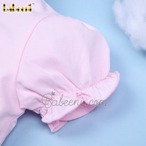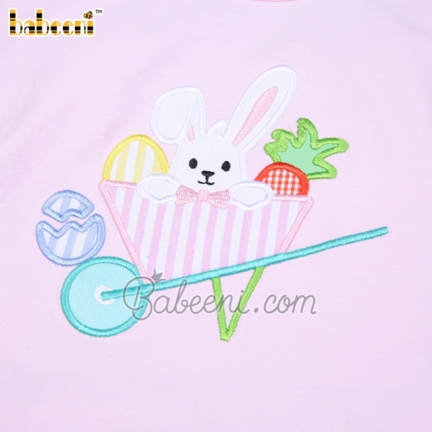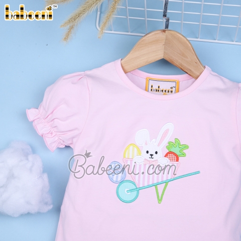 Cute appliqued bunny light pink girl T-shirt - BB1879A
