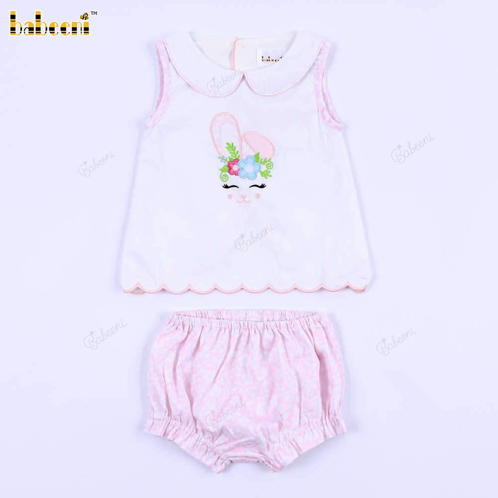 Cute Bunny Flower Appliqued 2 pieces set for Girl - BB3133