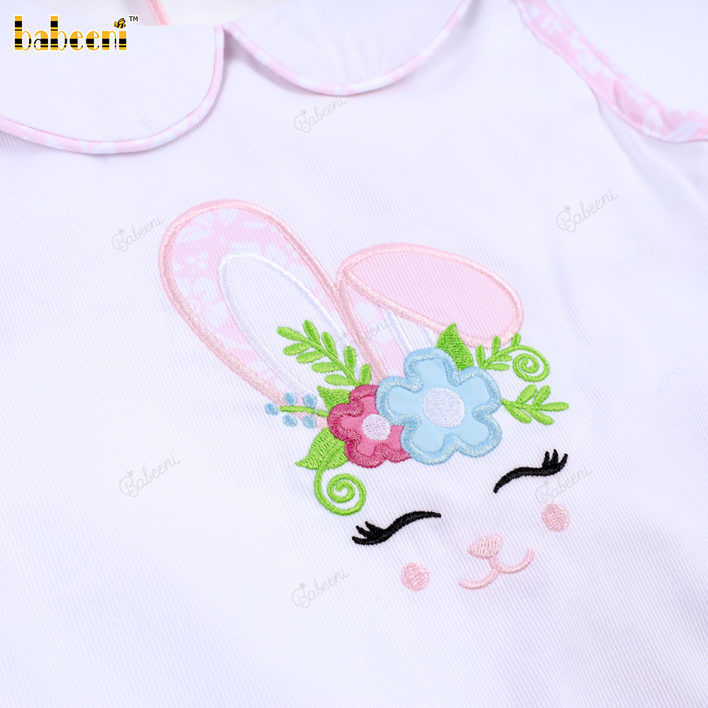 Cute Bunny Flower Appliqued 2 pieces set for Girl - BB3133A