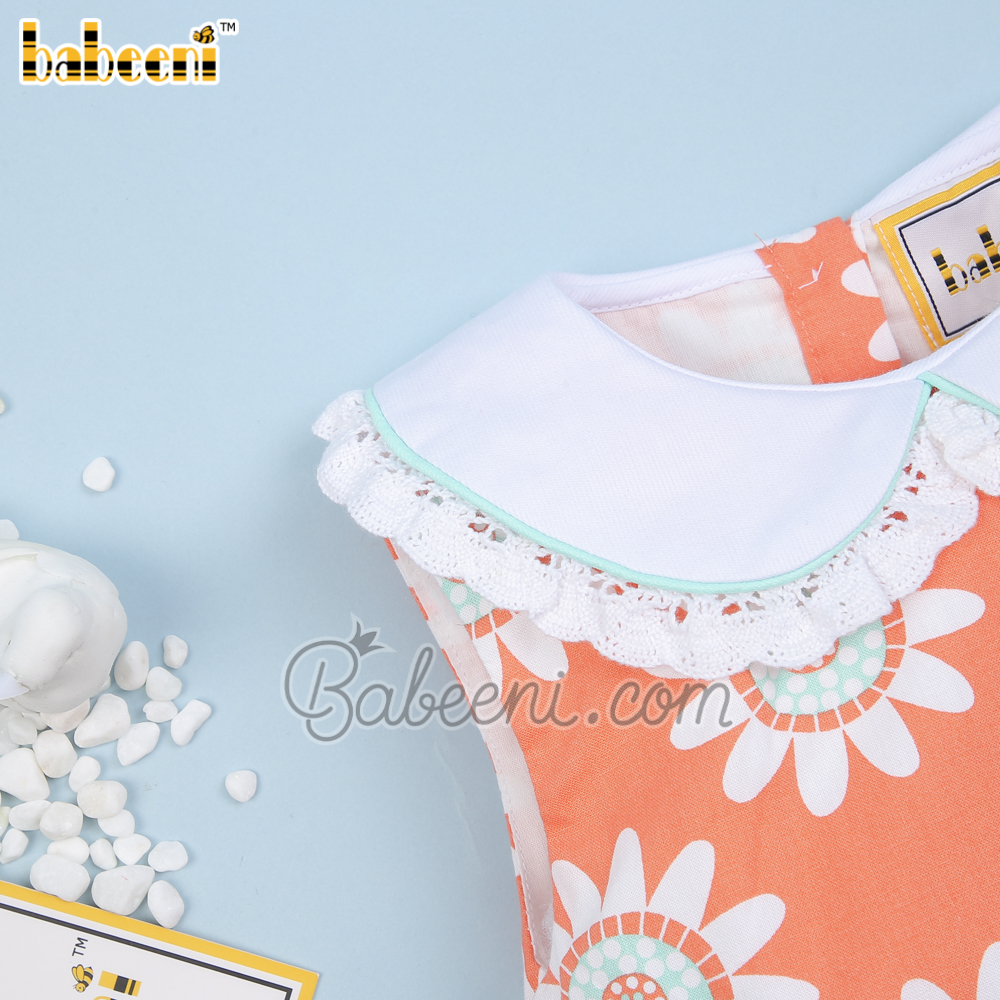 Fabric: Coral with mint coral sunflower printed fabric +White pique plain