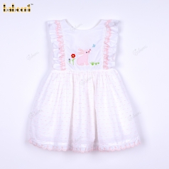 Shirred Dress Hand Embroidery Bunny Pink For Girl - BB3248B
