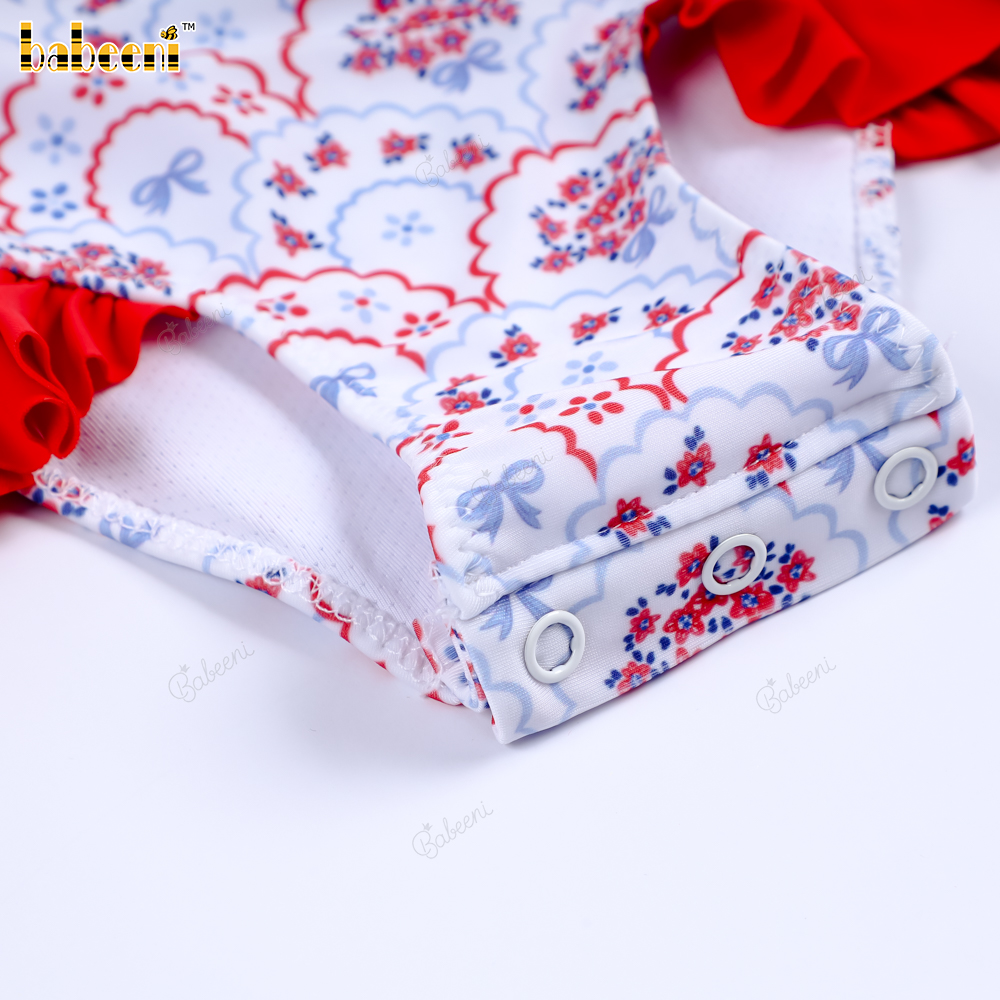 Features: A lovely onesie for baby girls with a floral print on the fabric, and crisscrossed bow straps. Perfect for spring and summer. The best gift for birthdays or special occasions.