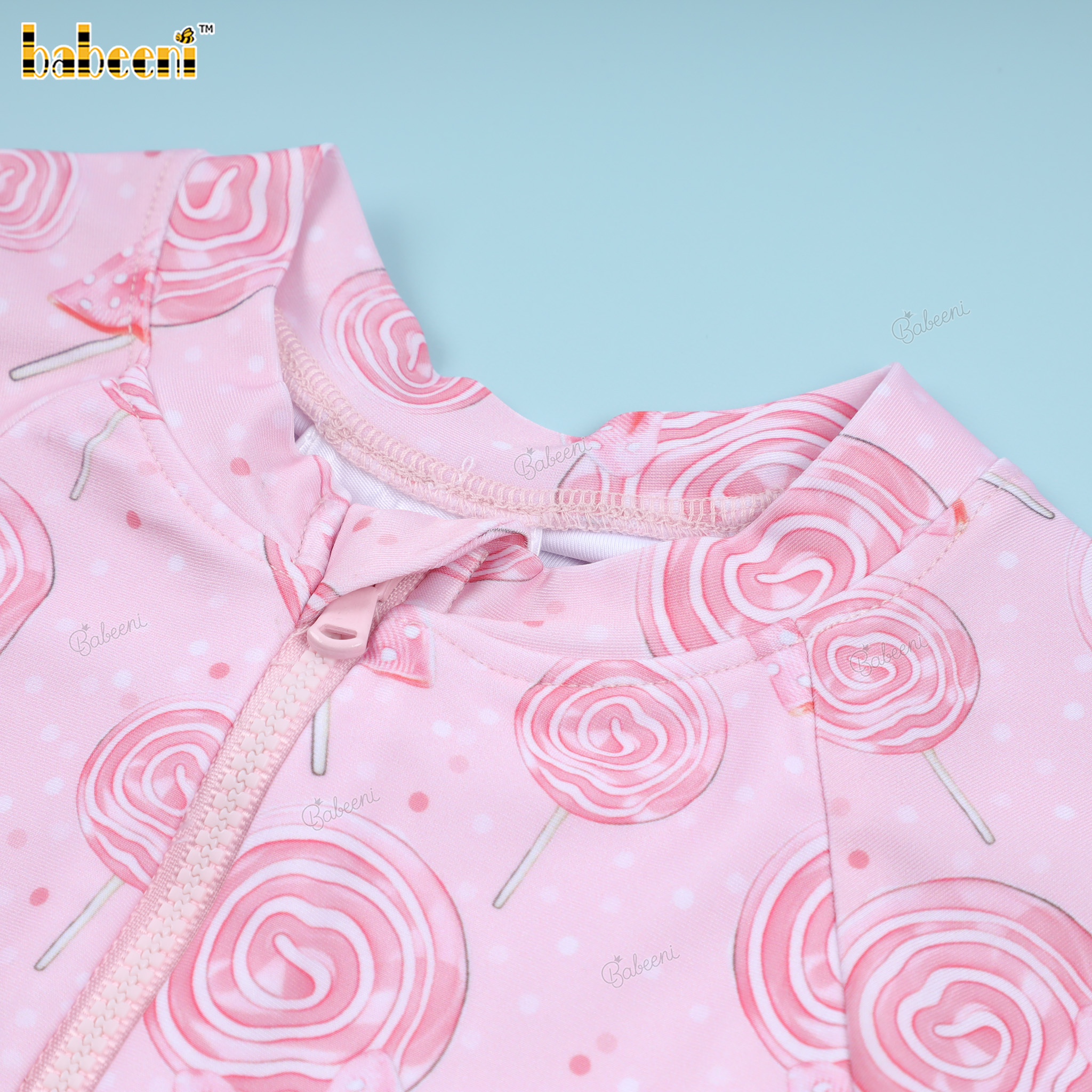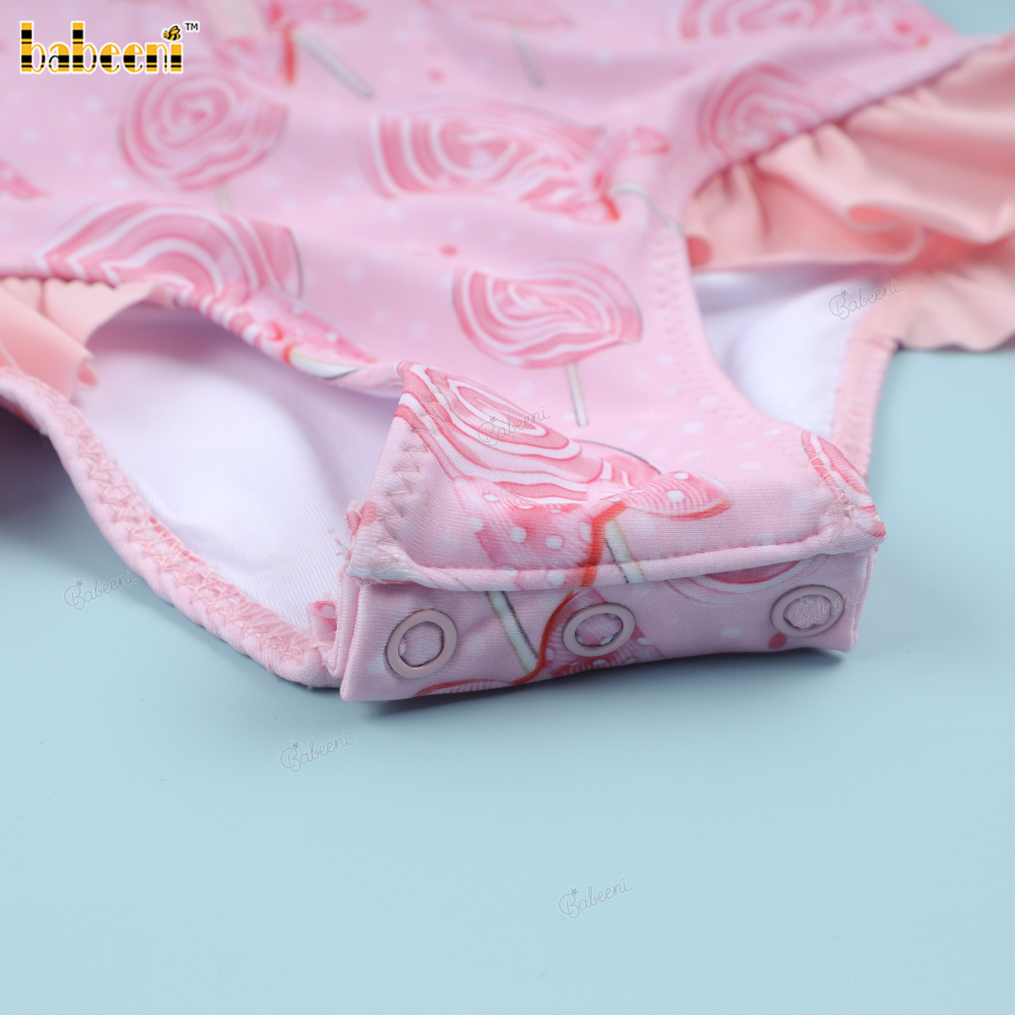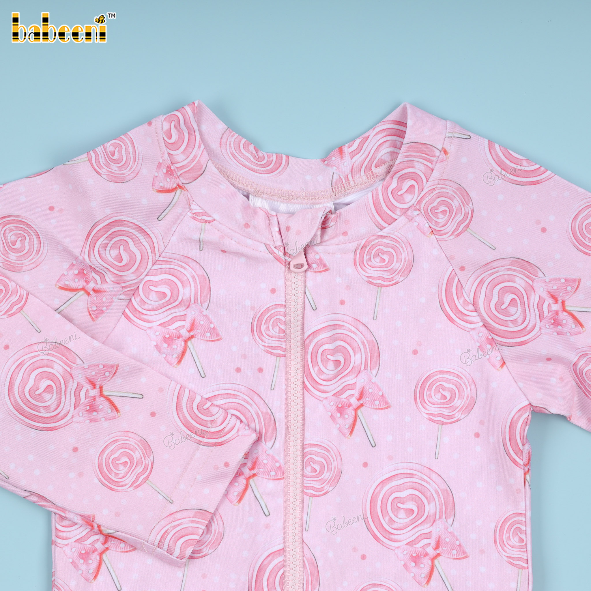 Features: Fancy Pink swimwear for little girls with sweet candy pattern printed by digital printed 4.0 technology. Perfect for Spring summer. Best gifts for birthdays or special days.