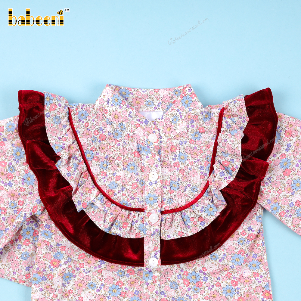 Floral Shirt Red Vletvet For Girl - BB3352B
