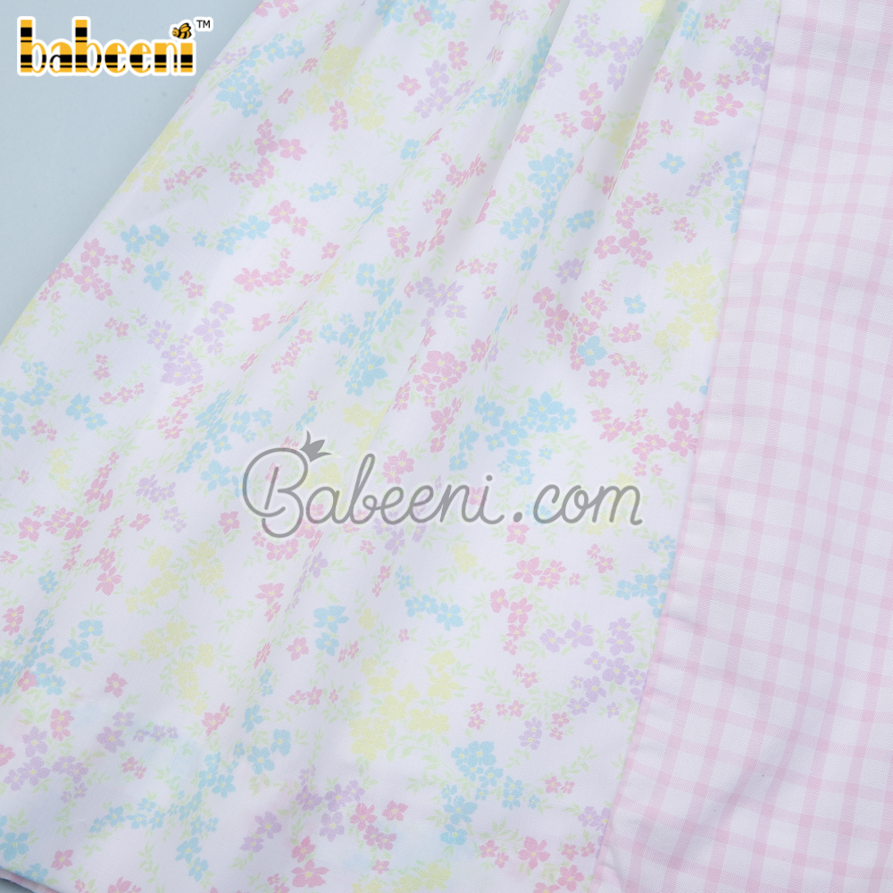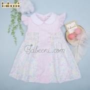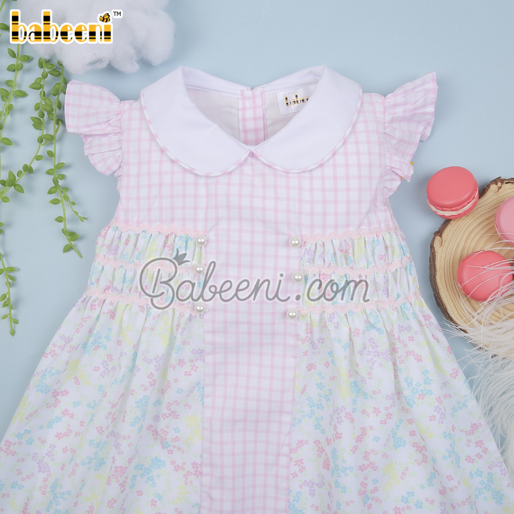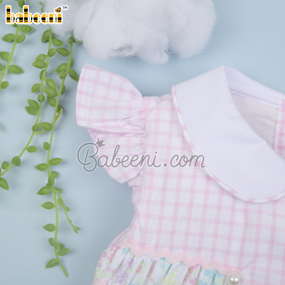 Flower printed baby pink window pane dress – BB3044A