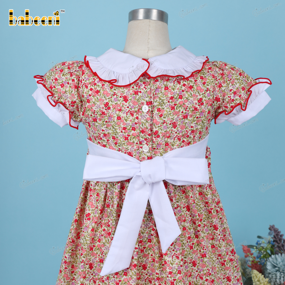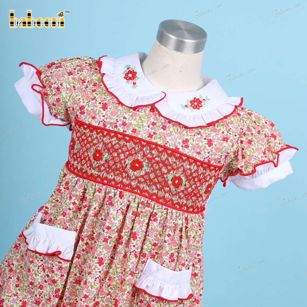 Features: A true spring vitality dress! Finished in a red floral pattern with two red flowers being hand embroidered on the neck. This is a nice gift for your baby girl this spring and summer.