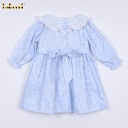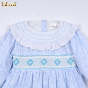 Geometric Smocked Belted Dress In Blue For Girl - BB3203