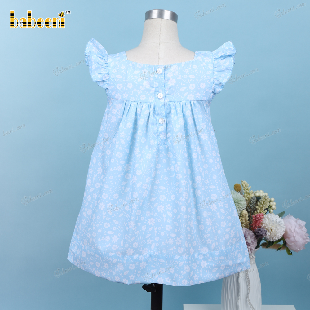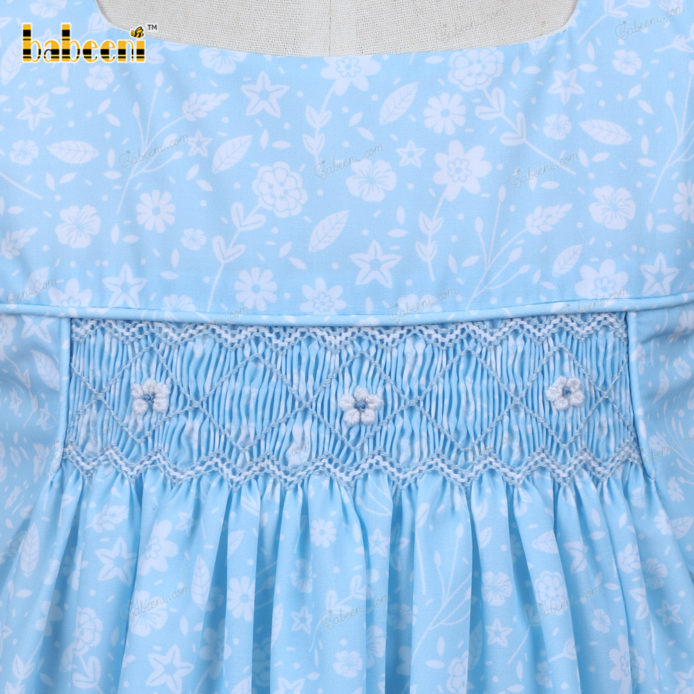 Geometric Smocked Dress In Blue With White Floral For Girl - BB3199A