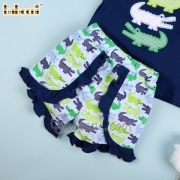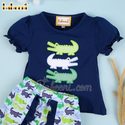 Girl set with appliqued crocodile navy top printed shorts - BB2249A