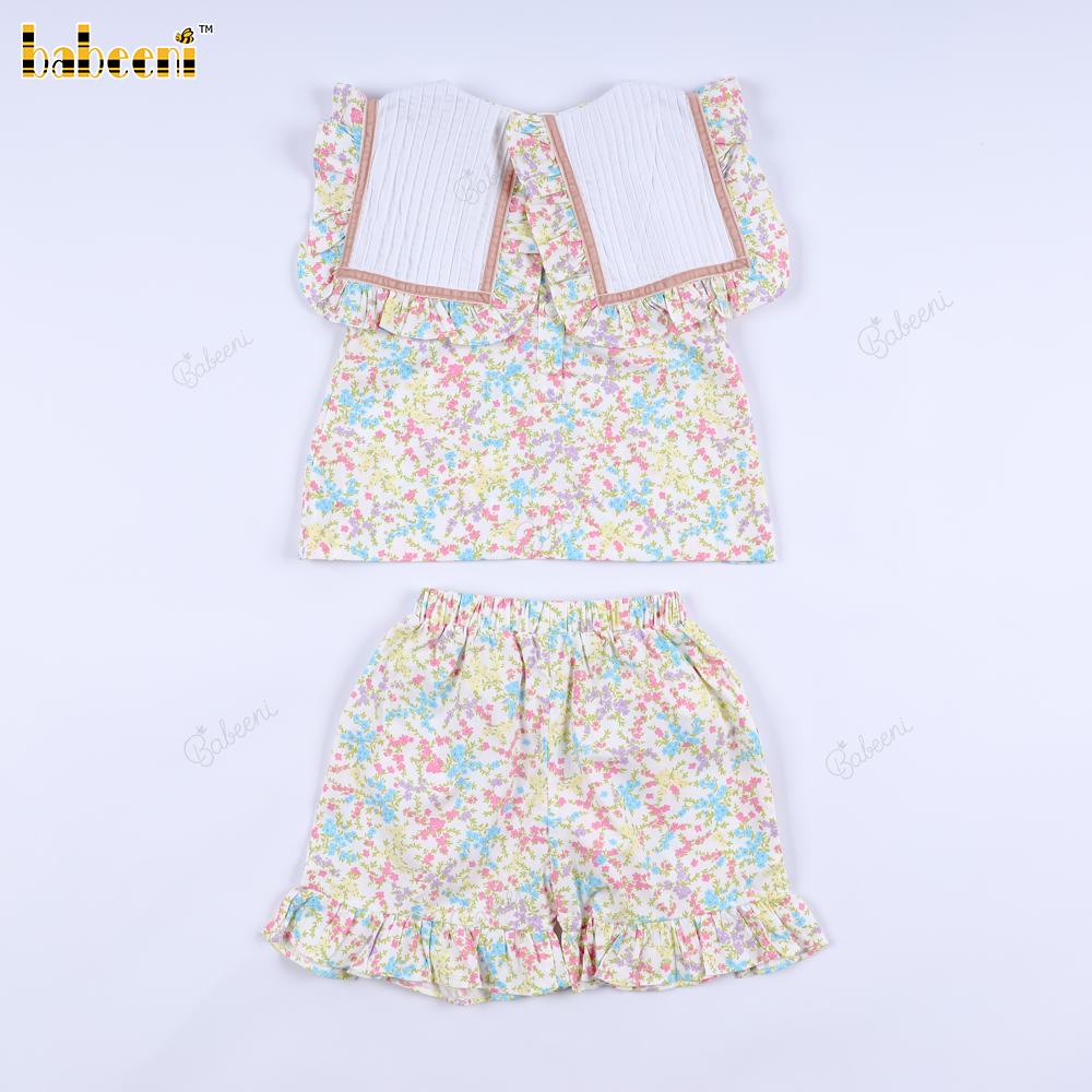 Material: Baby blue, pink, and lavender floral fabric + White plain