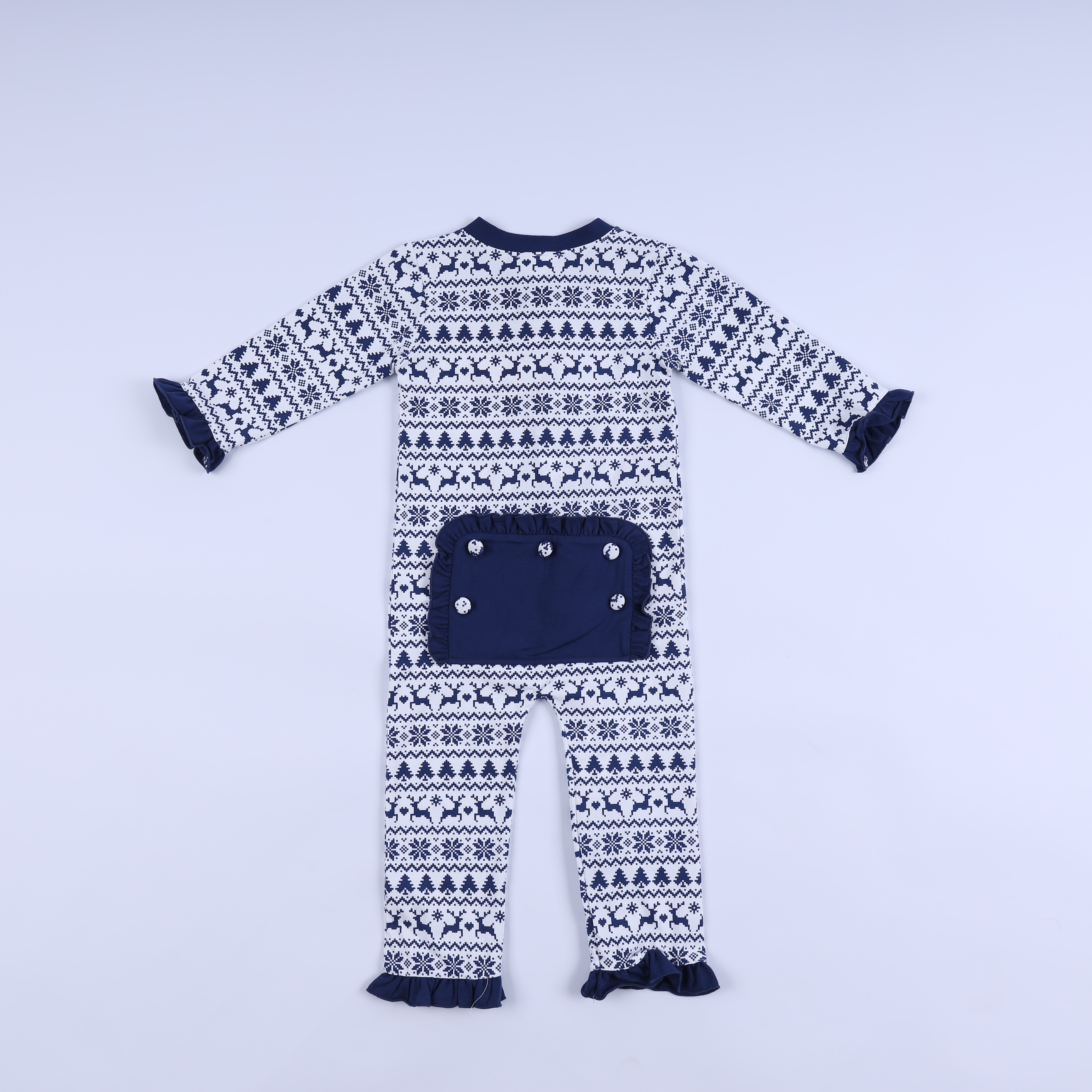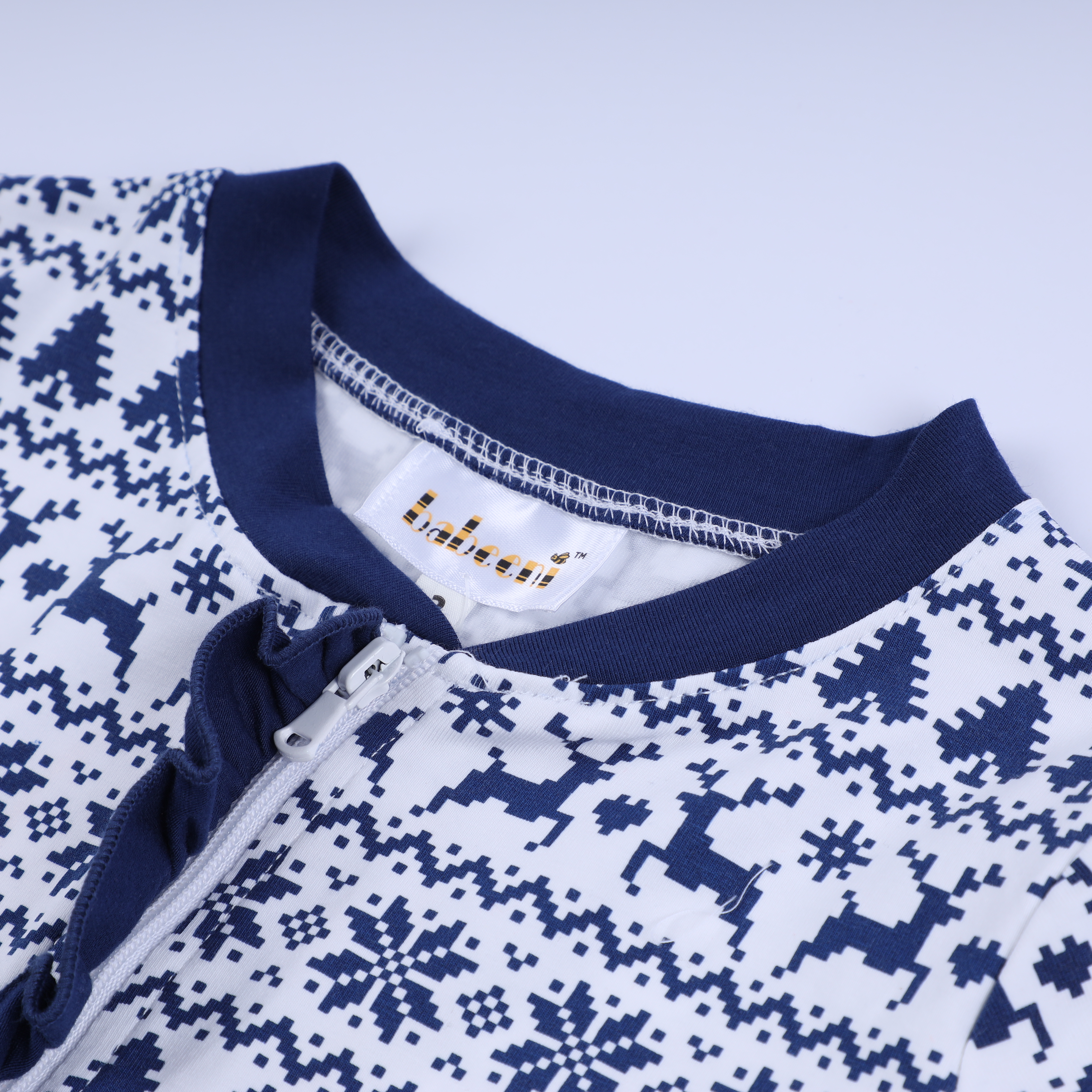 Features: This baby Christmas outfit features a classic Christmas motif with subtly repeating images of reindeer, Christmas trees, and snowflakes. The elegant charcoal purple and white color scheme creates a warm, sophisticated feel, perfect for winter. The long sleeves with ribbed collar, cuffs, and ankles provide excellent warmth, protecting your baby in cold weather. The dark blue back pocket adds a cute and practical touch. Suitable for everyday wear, outings, photoshoots, or Christmas celebrations.