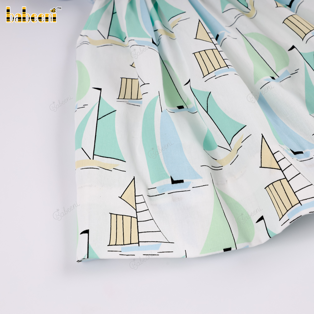 Material: 4.0 Fabric printed with sailboat pattern + Blue color + Embroidered sailboat on the collar