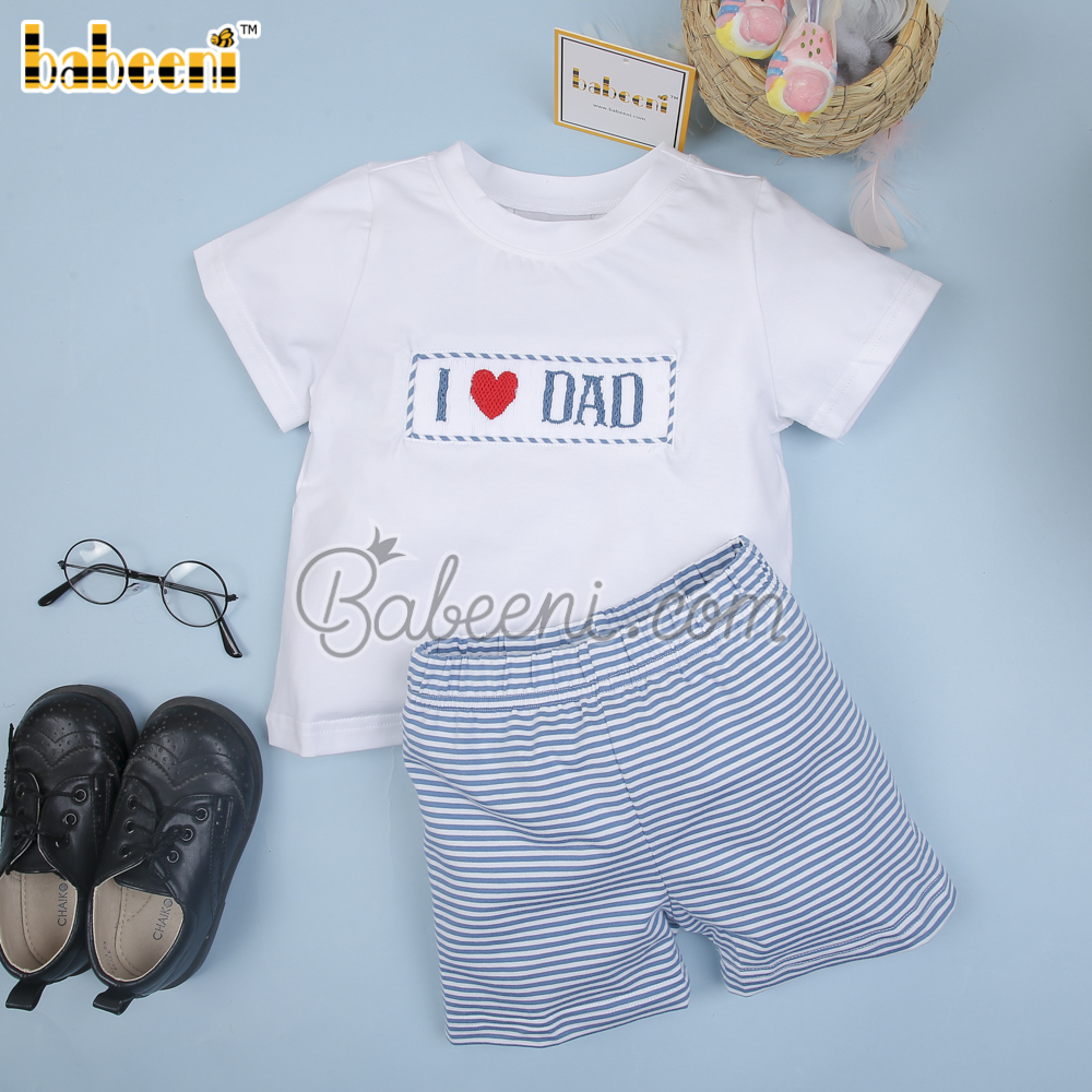 Features: Nice boy set clothing for little boys with hand smocked I love Dad on the chest, short sleeves. Perfect for Spring summer. Best gifts for birthday or special days.