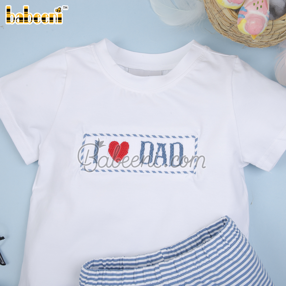 Features: Nice boy set clothing for little boys with hand smocked I love Dad on the chest, short sleeves. Perfect for Spring summer. Best gifts for birthday or special days.