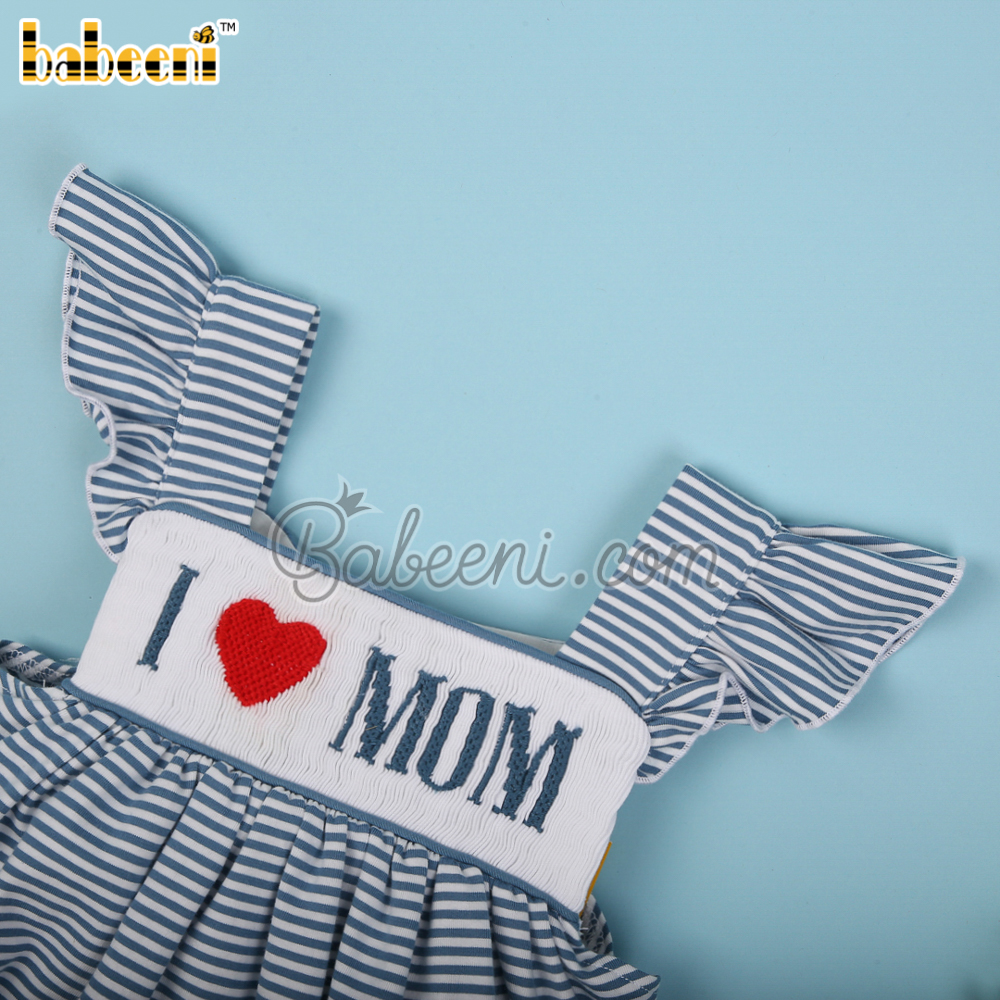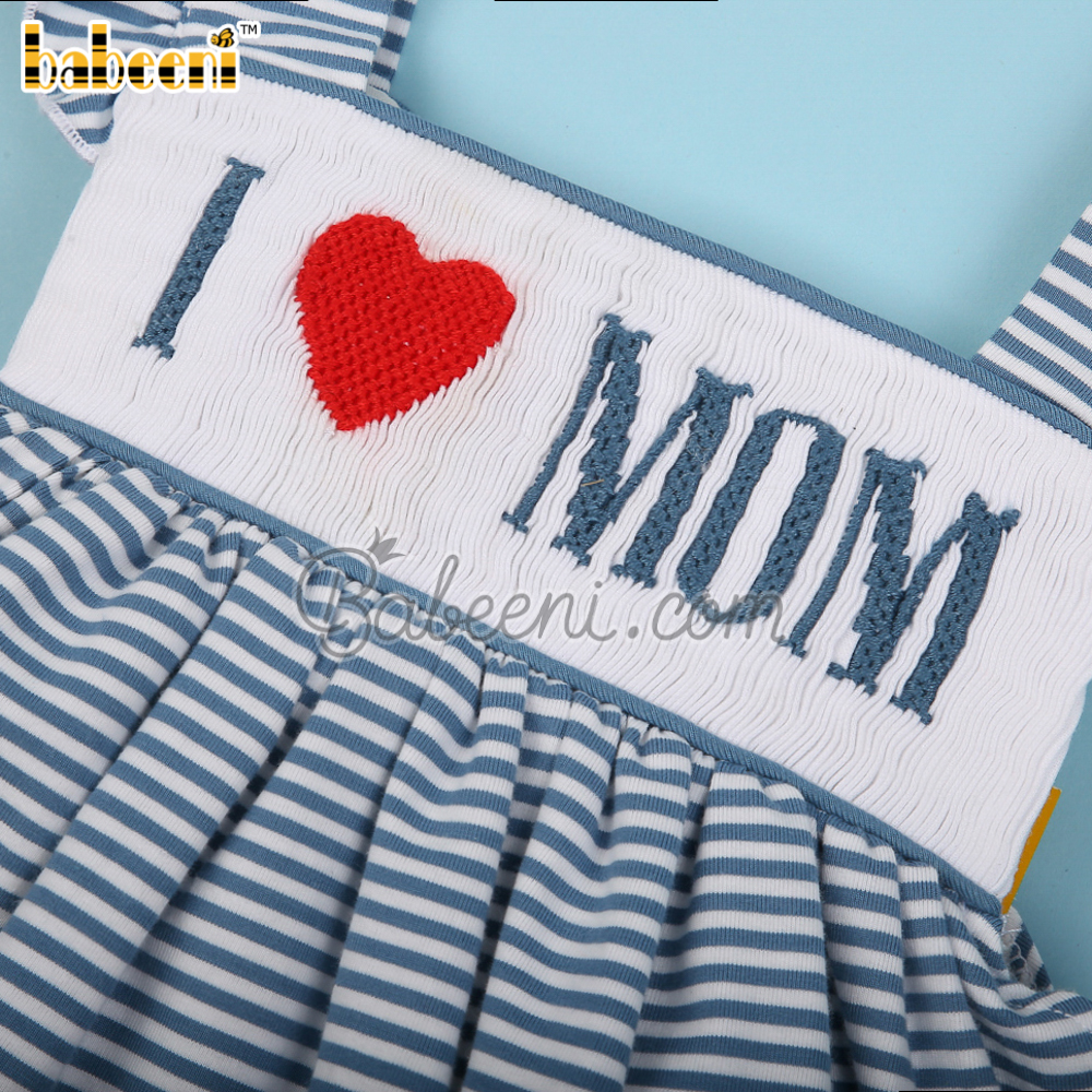 I love Mom hand smocked bow bubble for little girls – BB3394A