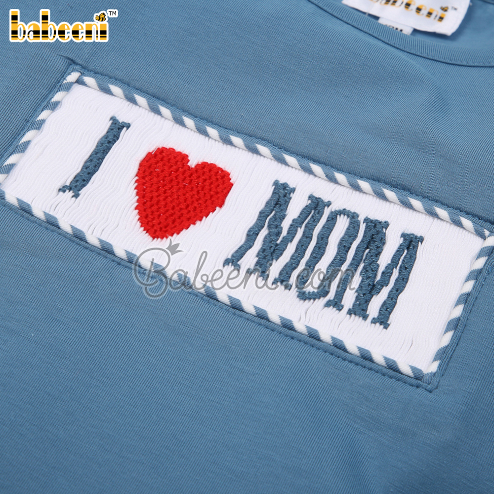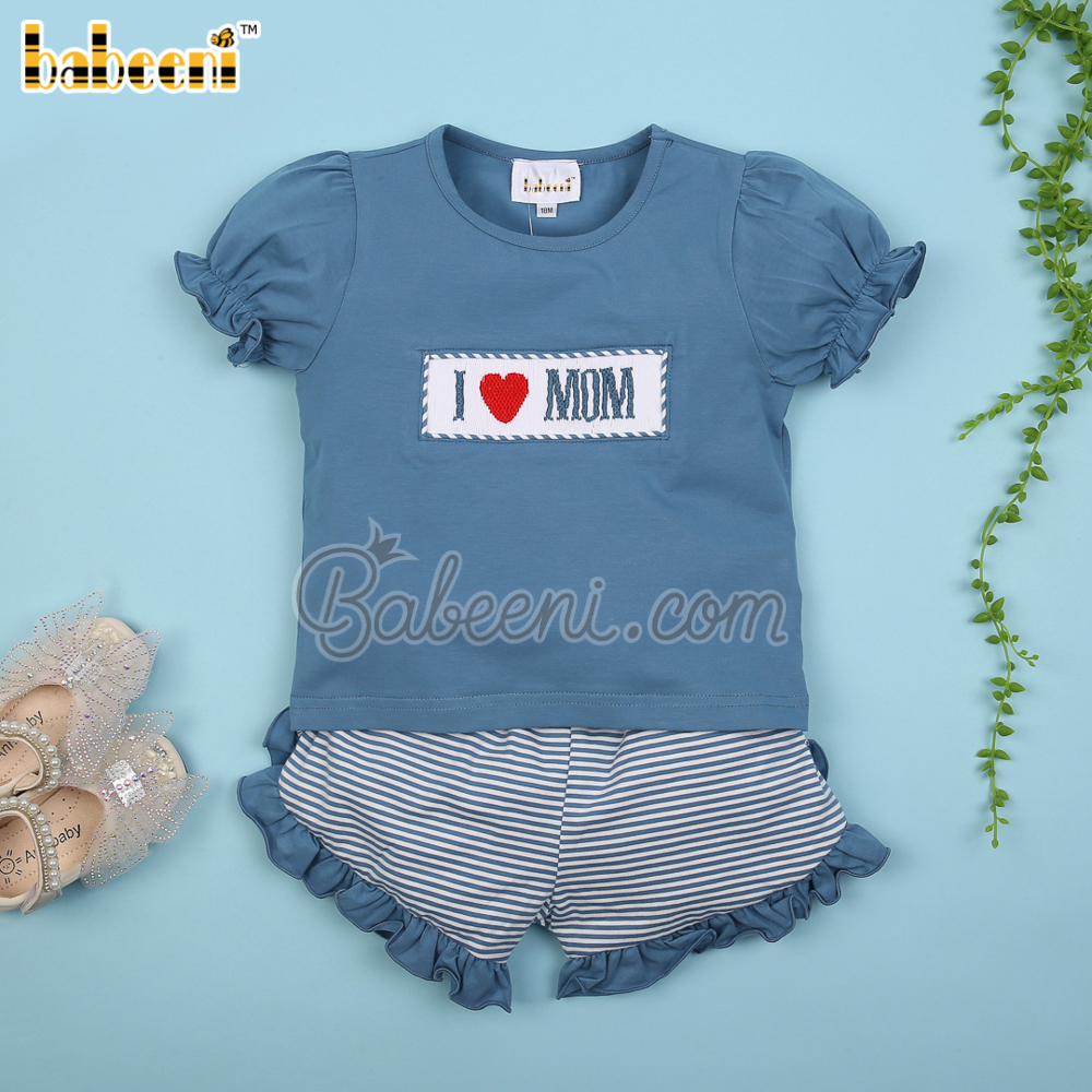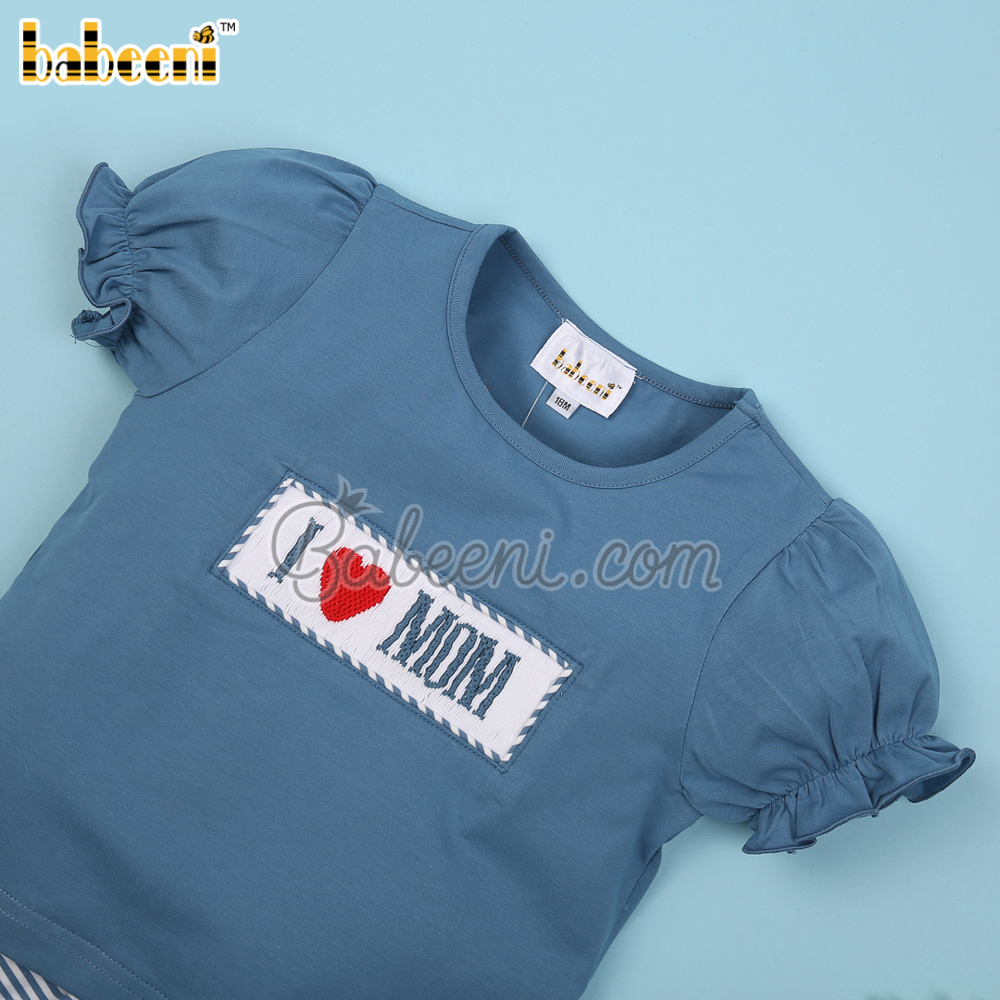 I love Mom hand smocked girl set clothing – BB3049A