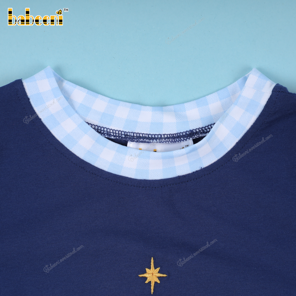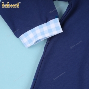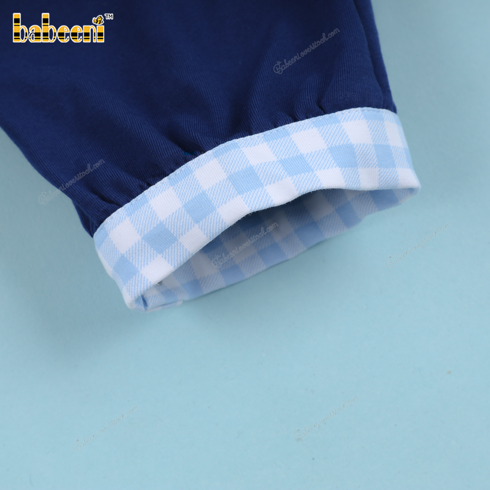 Material: Navy plain knit + Baby blue gingham knit fabric
