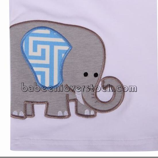 Feature: Adorable appliqued set for baby boys with elephant appliqued pattern, short sleeves.