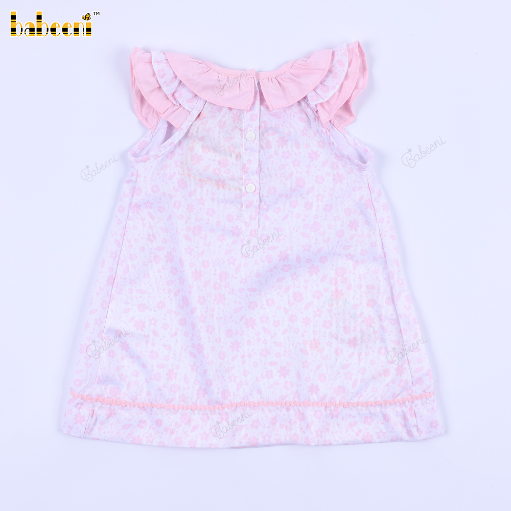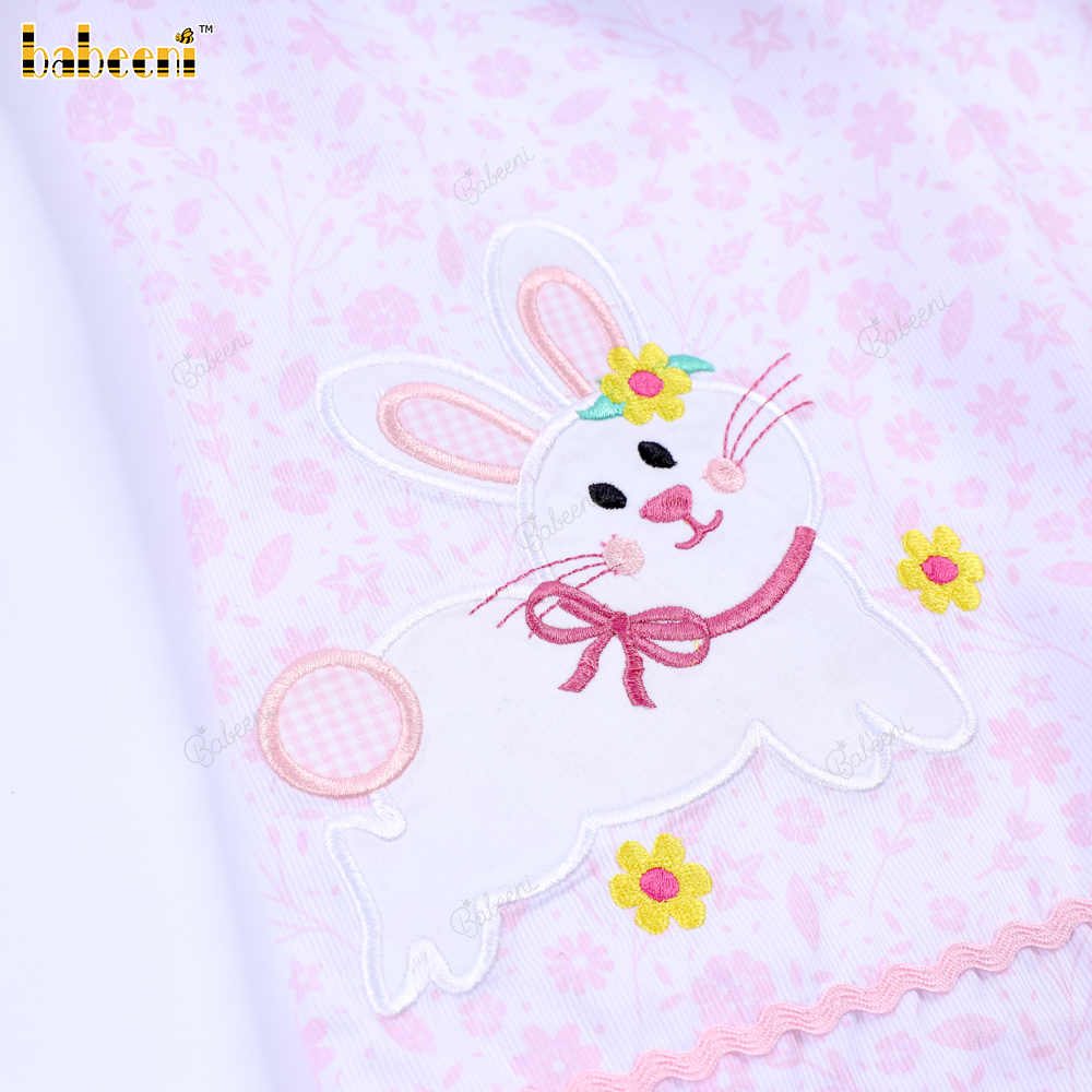 Machine Embroidery Bunny Dress In Pink For Girl - BB3246