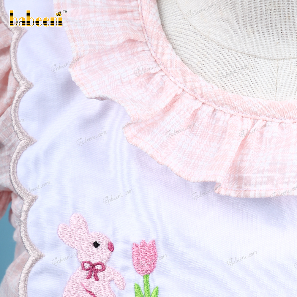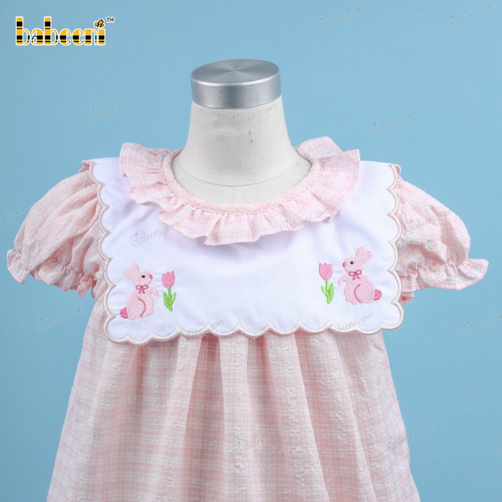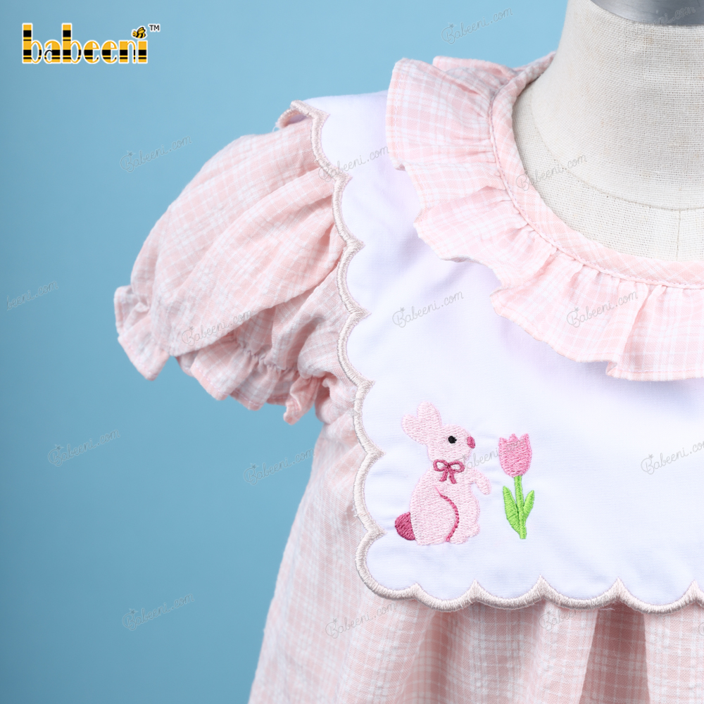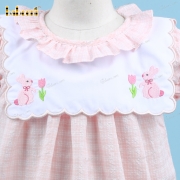 Machine Embroidery Dress In Pink With Bunny And Rose For Girl - BB3171A