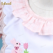 Feature: This lovely pink dress has two lovely pink flowers and rabbits smocked on the chest. Your baby girl can wear this dress on many occasions.