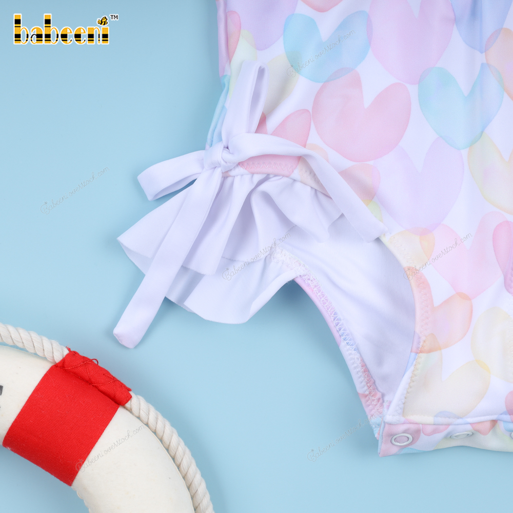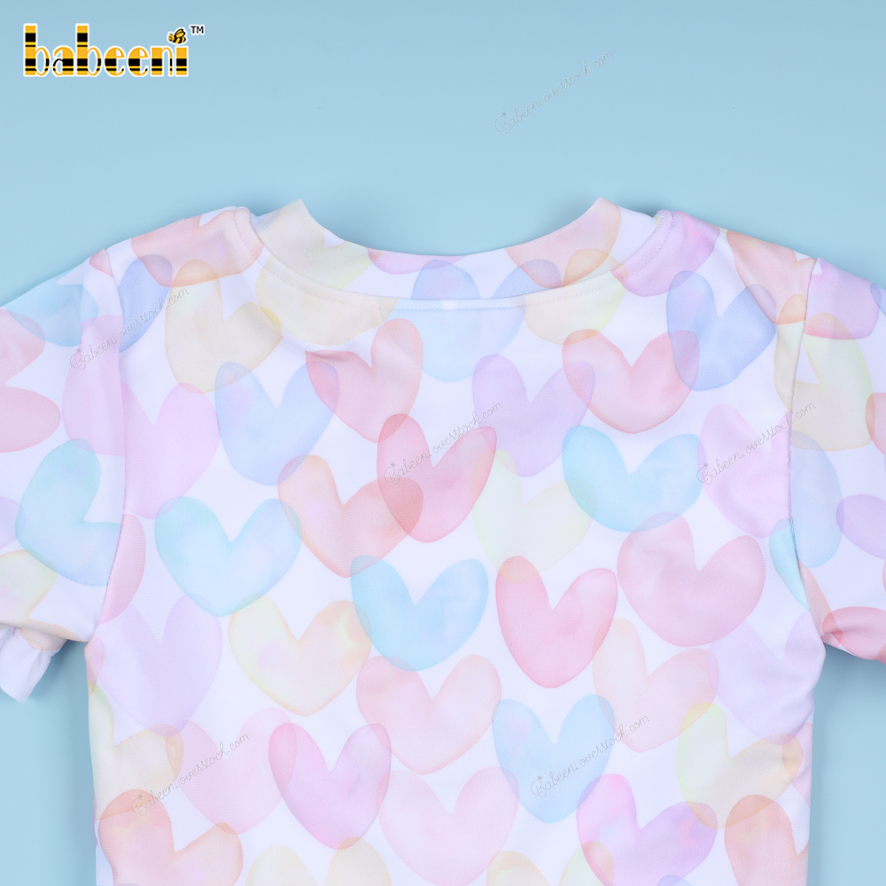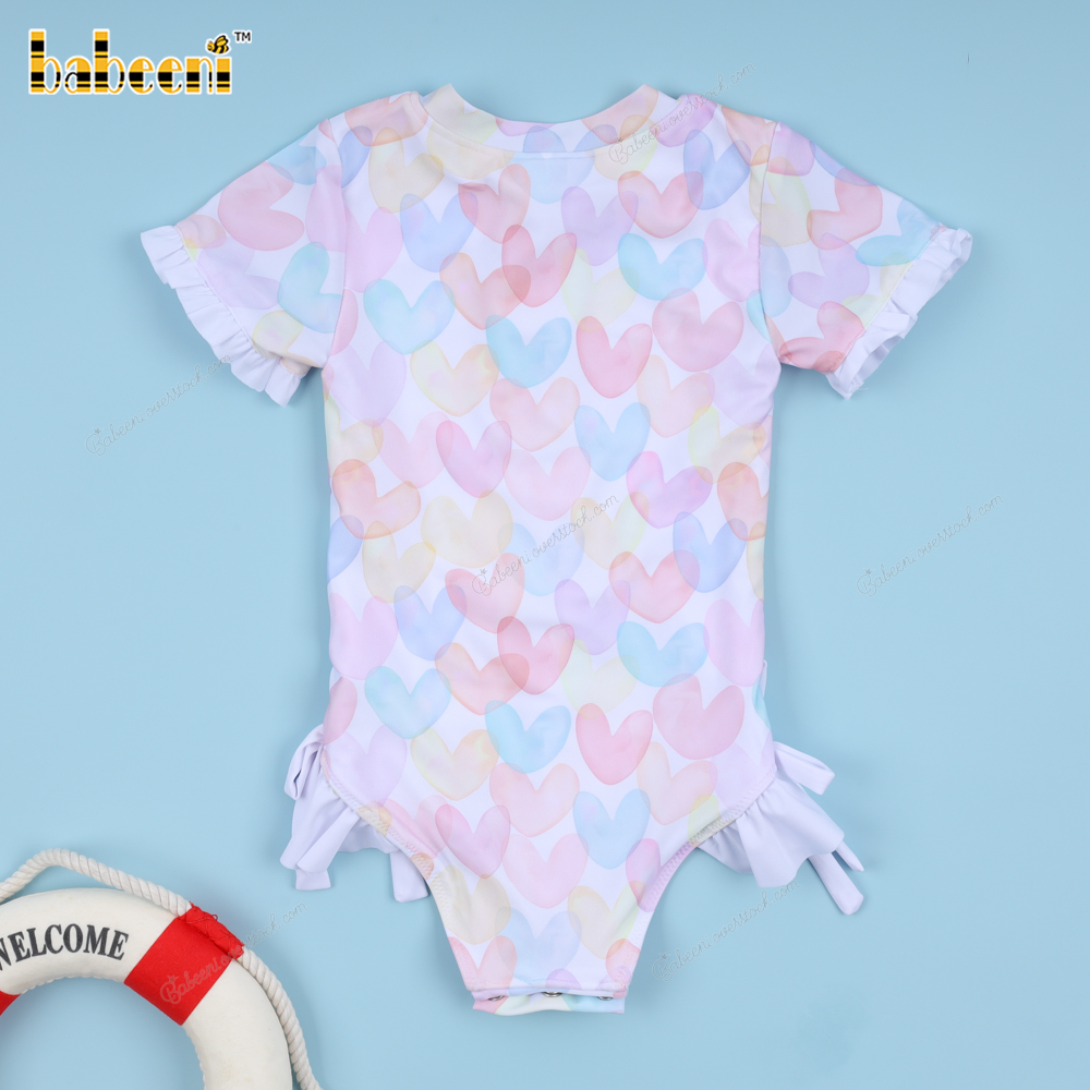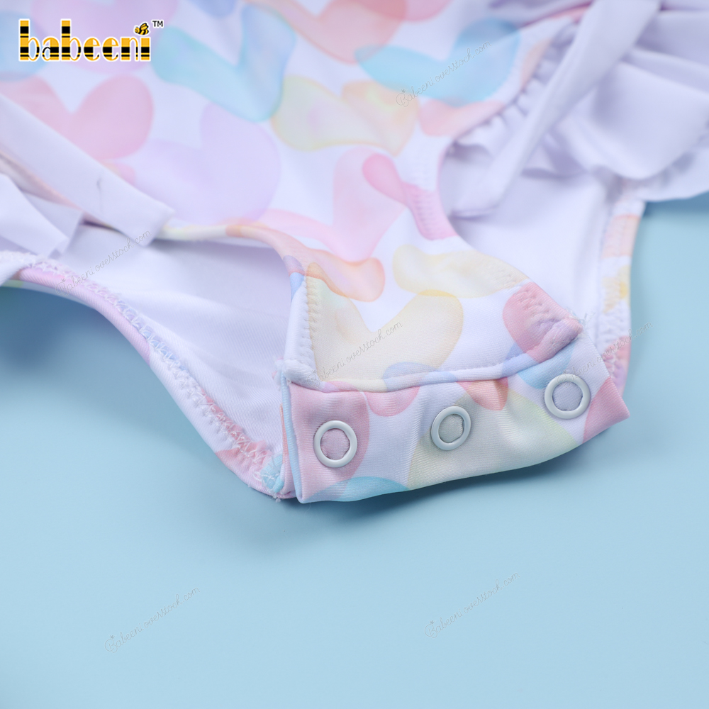 Features: Fancy swimwear for little girls with Multi Color Heart pattern. Perfect for Spring summer. Best gifts for birthdays or special days.