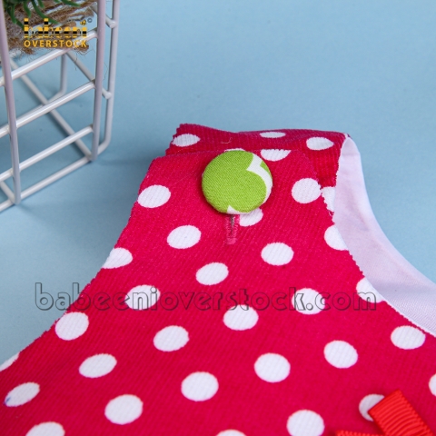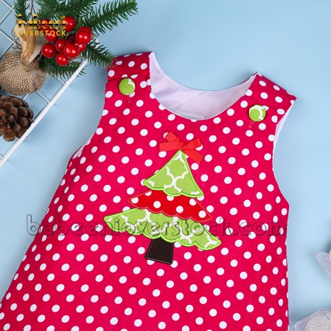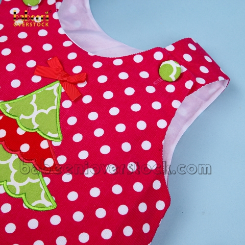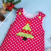 Feature: Adorable A-line dress with pine applique on the chest for Christmas, buttons on the shoulder for easy dressing.