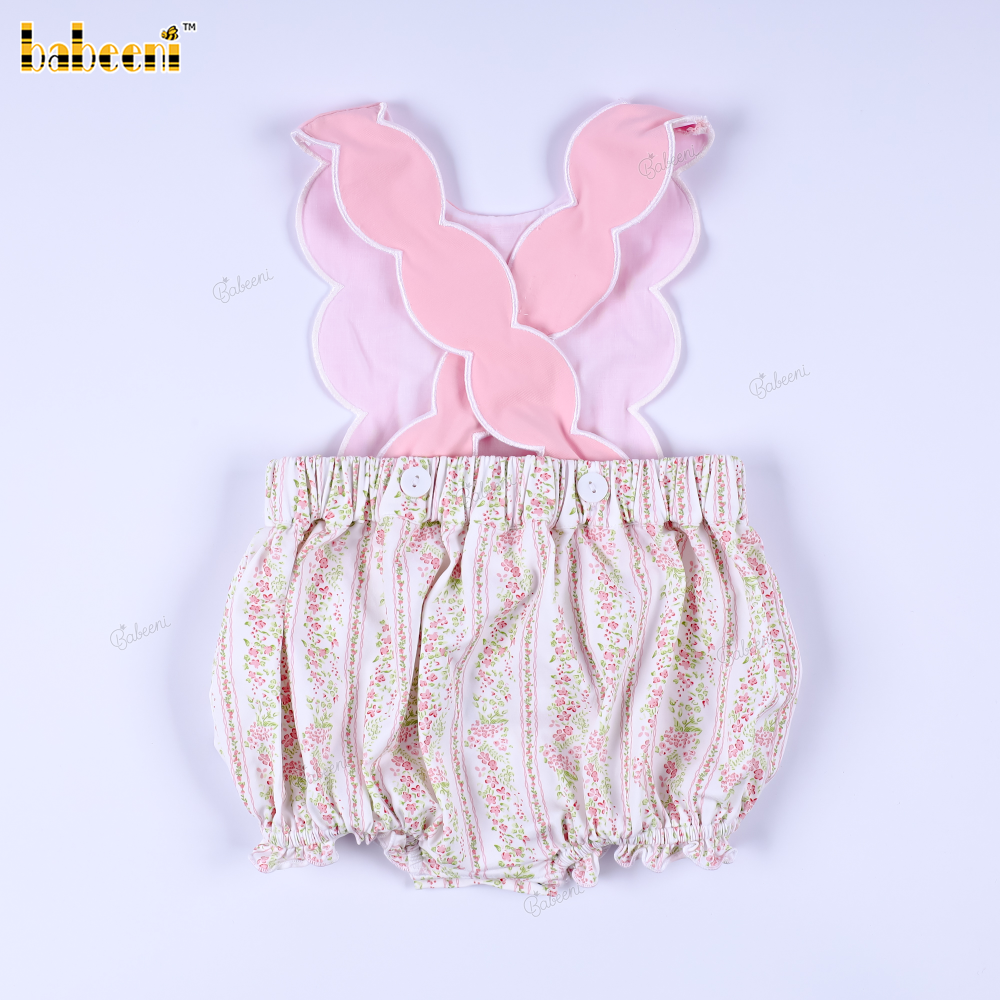 Pink Bow & Floral Bubble Romper for Baby Girls- BB3594