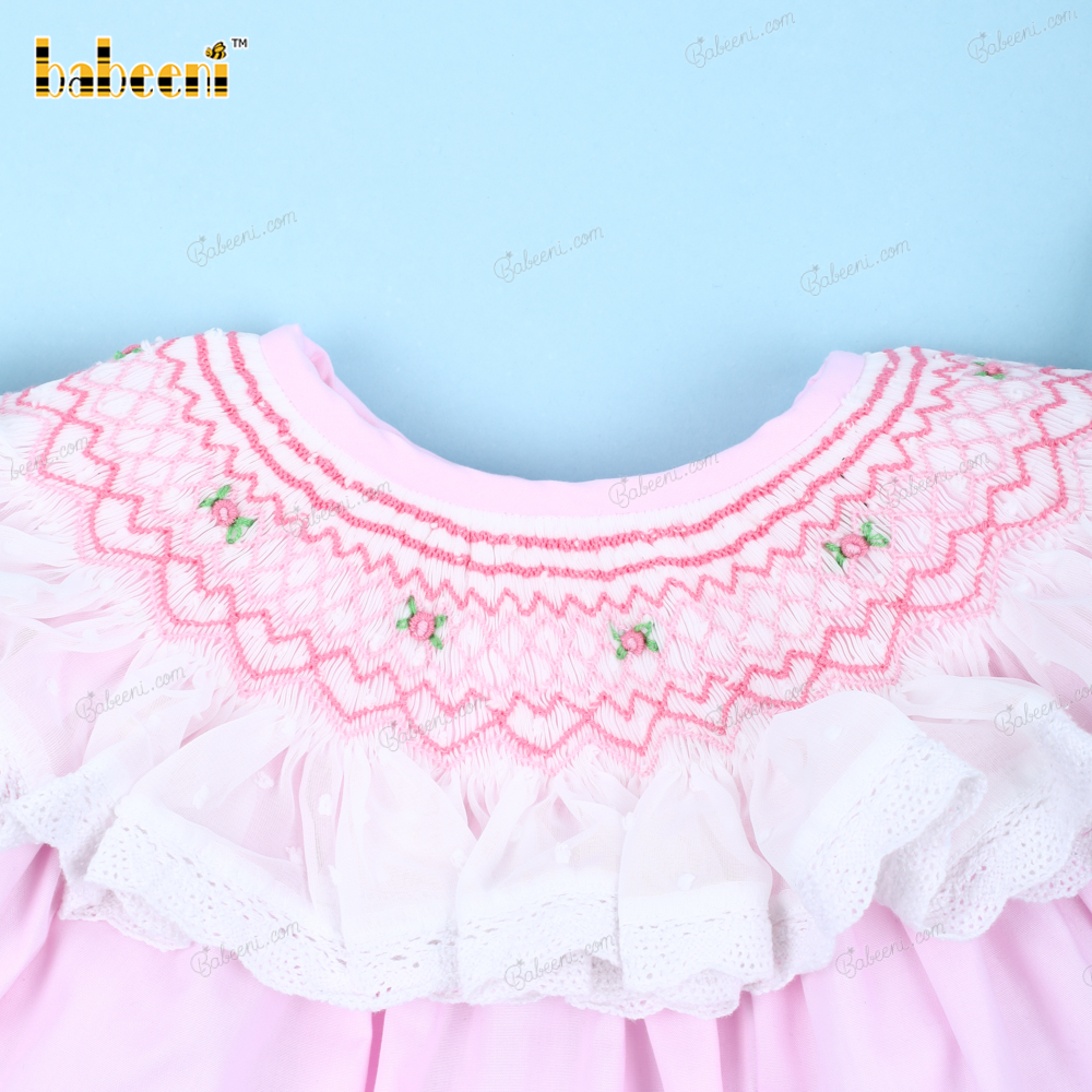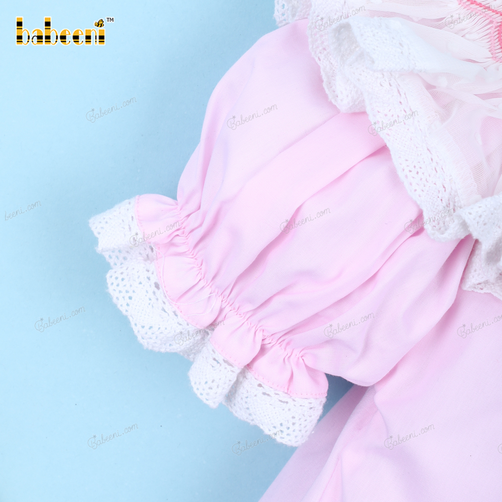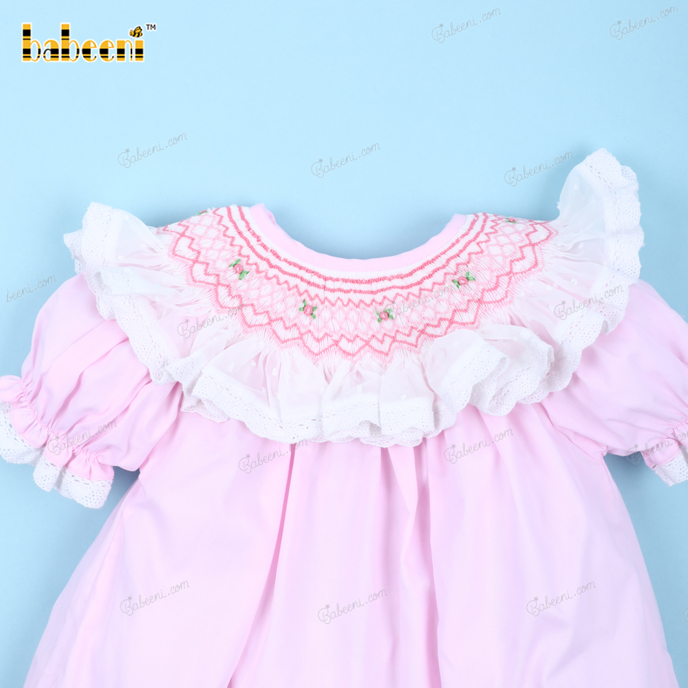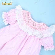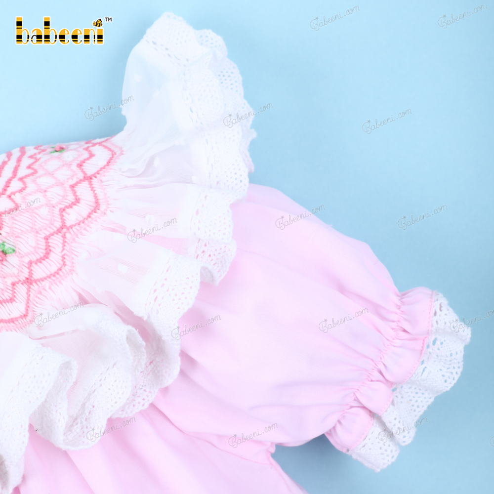 Pink Smocked Bishop Dress Hand Embroidery For Girl - BB3125A